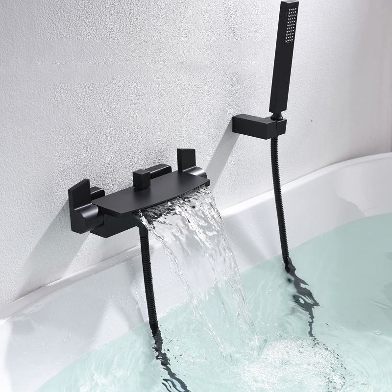 Modern Tub Faucet Trim Copper Lever Handles Wall Mounted Waterfall Bathroom Faucet