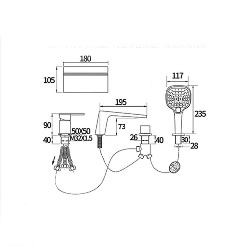 Modern Tub Spout Trim Copper Deck-Mount with Hand Shower and Handles Roman Tub Faucet