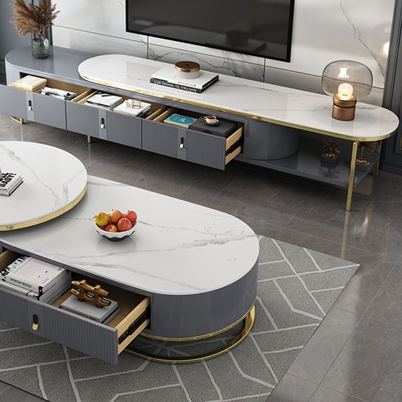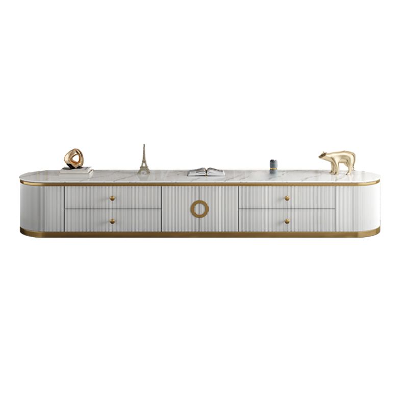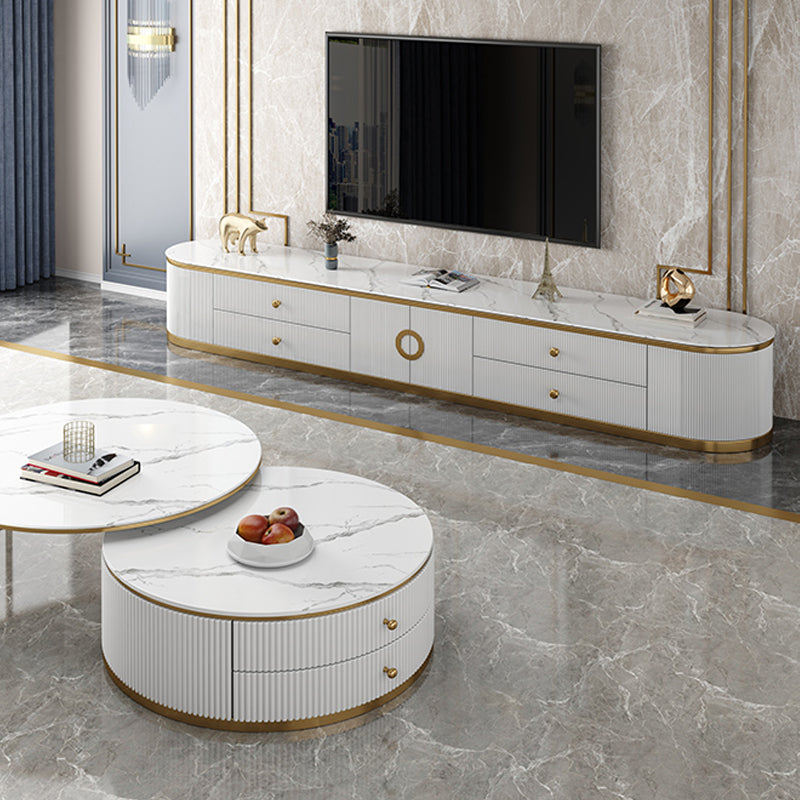 Modern TV Media Stand Stone Enclosed Storage TV Stand Console with Glide Drawers