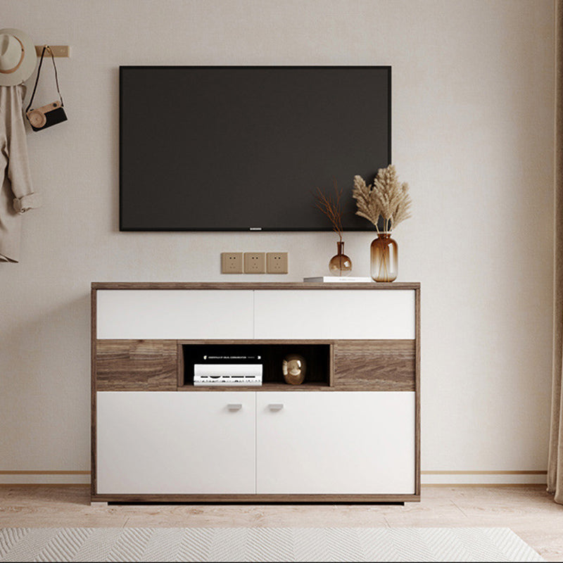 Modern TV Stand Console Faux Wood TV Stand Console with 2 Storage