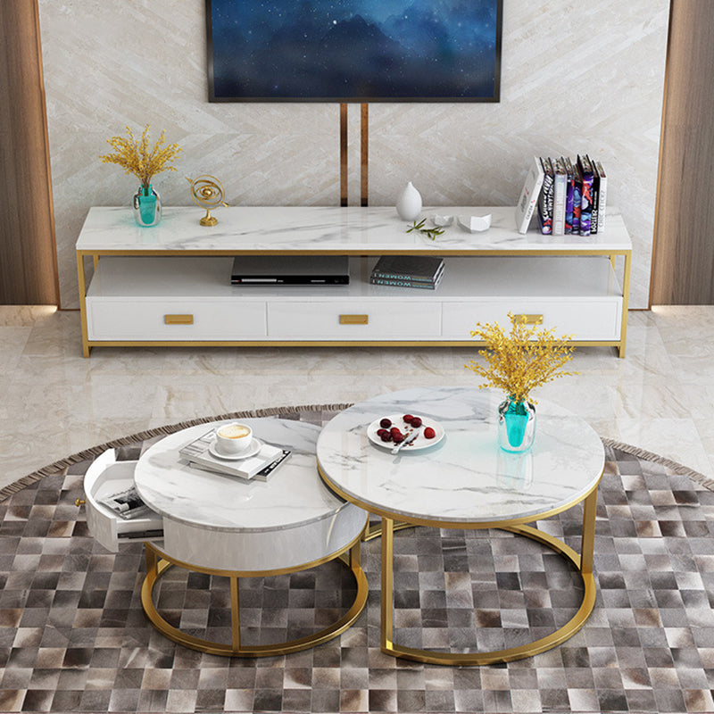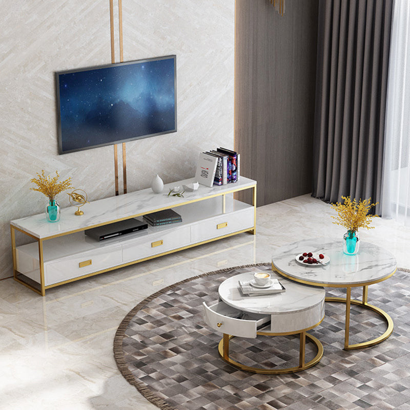 Modern TV Stand Console Open Storage Media Console TV Stand with 3 Drawers