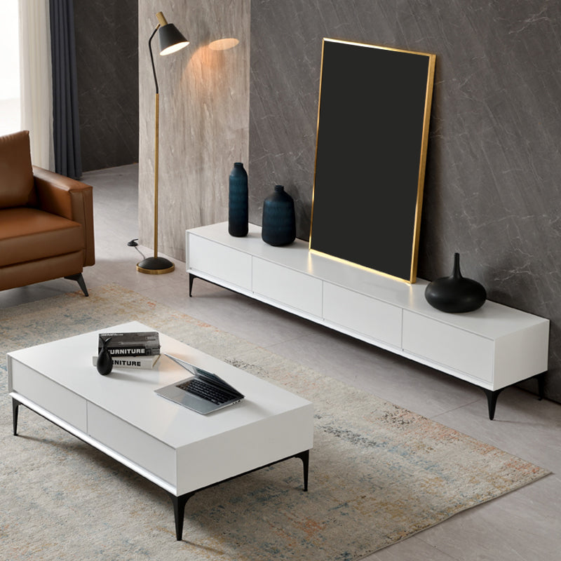 Modern TV Stand Enclosed Storage TV Stand Console with 4 Drawers