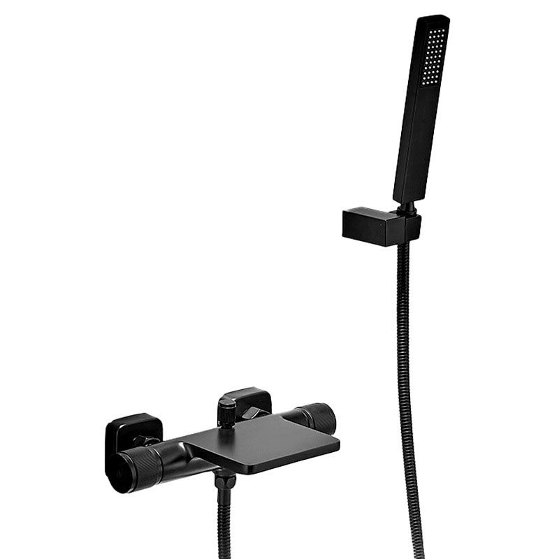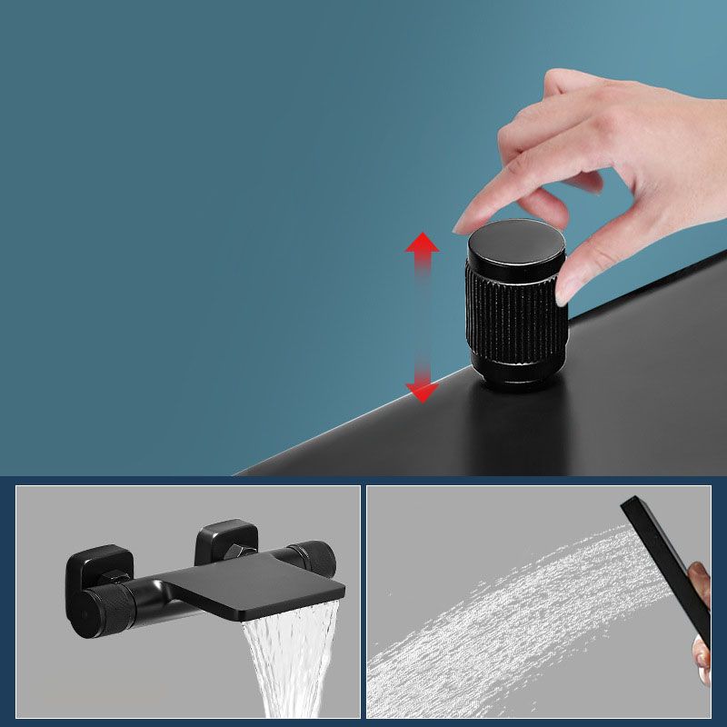 Modern Wall Mounted Metal Tub Filler Waterfall Double Handles Tub Faucet Trim