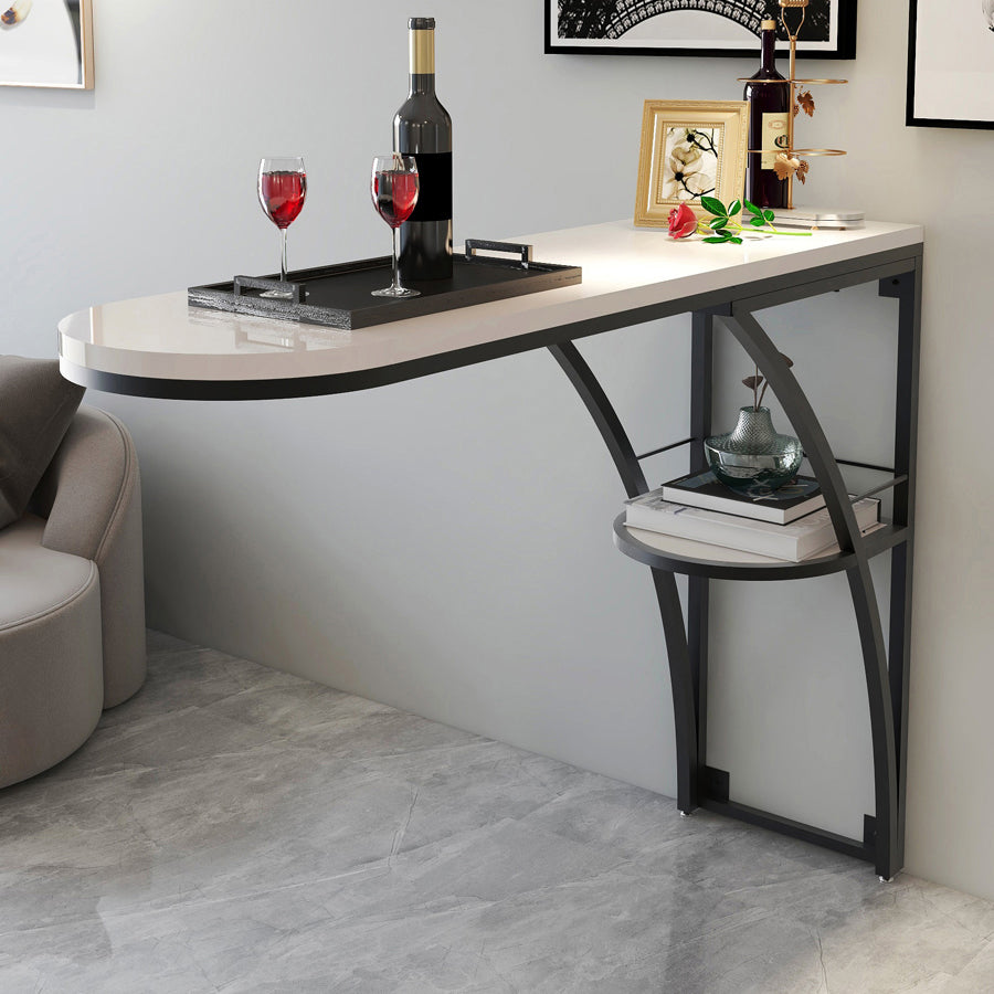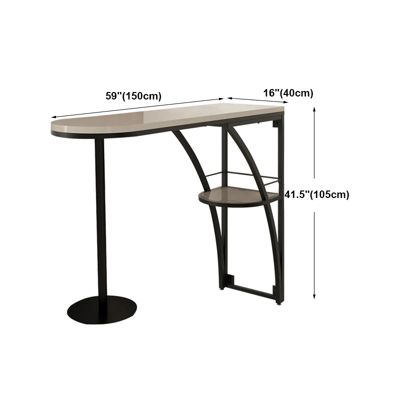 Modern White Wood Bar Table with Specialty Table Top Black Pedestal Table - 42" H