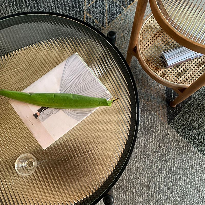 Modern Wood 4 Legs 1 Coffee Table with Shelf Round Glass Table