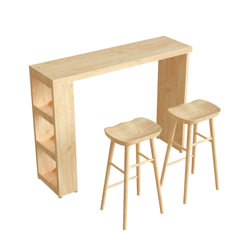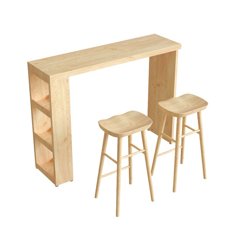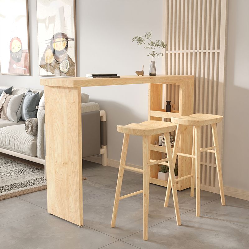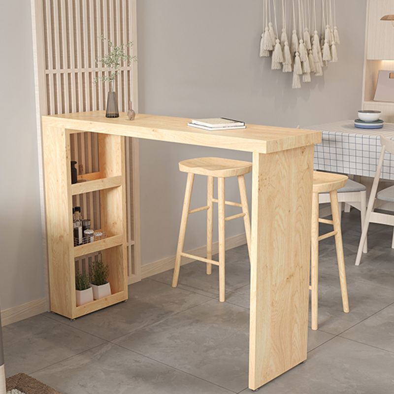 Modern Wood Patio Bar Table with Rectangle Table Top Double Pedestal Table- 41.3" H