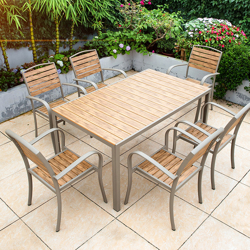 Modern Wood Patio Dining Table 1/2/7 Pieces Brown Dining Set for Courtyard