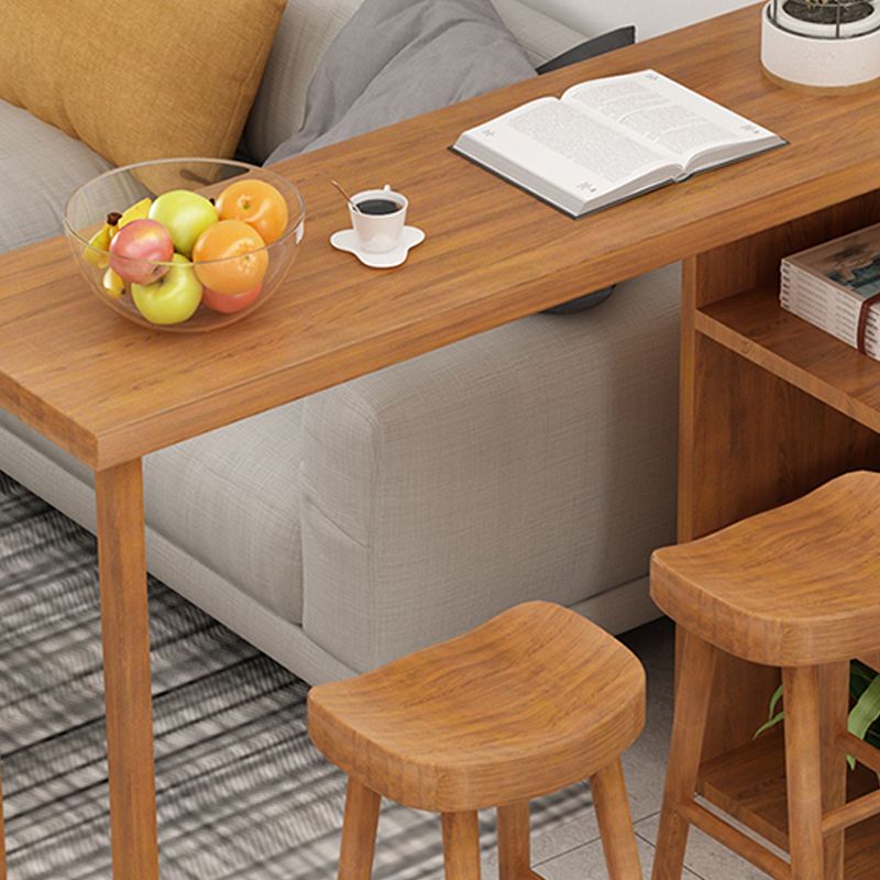 Modern Wood Pub Table with Rectangle Table Top Double Pedestal Table- 41.3" H