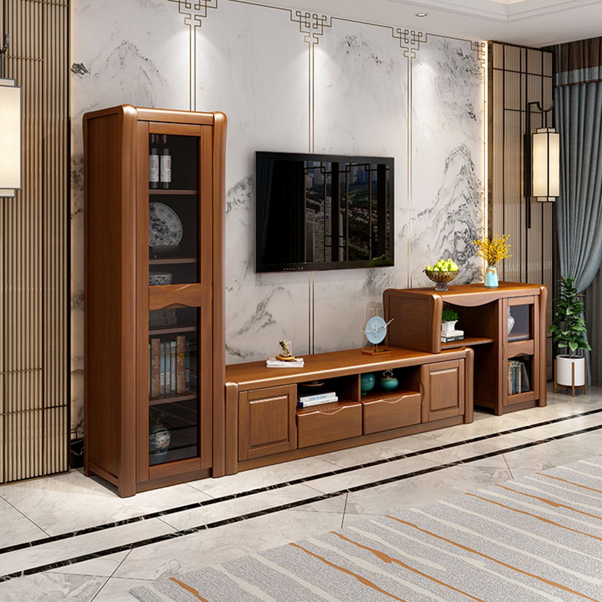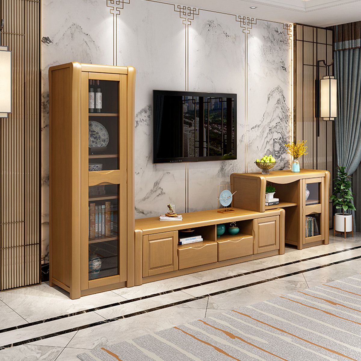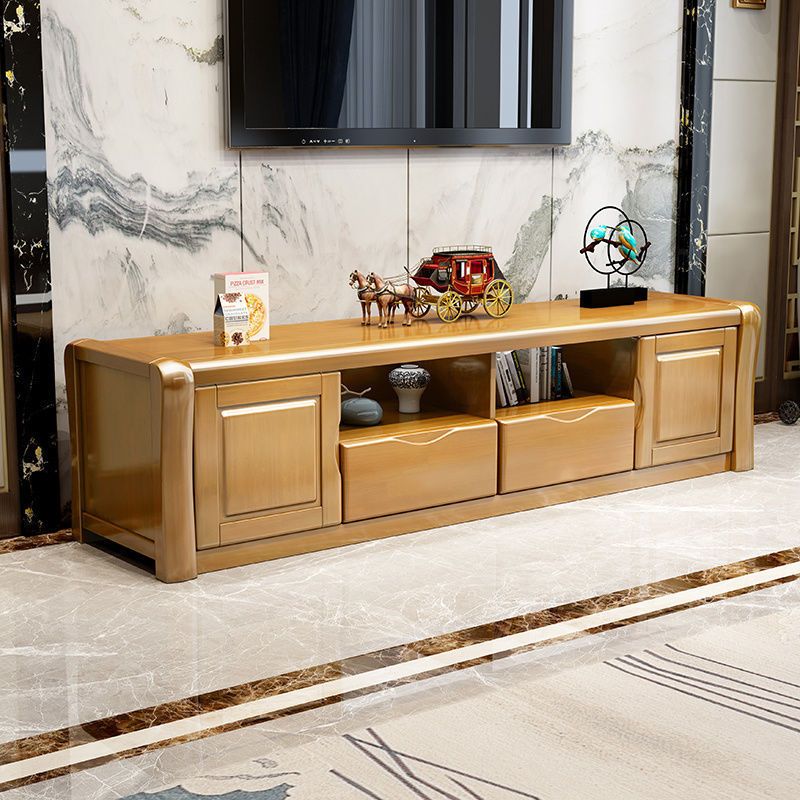 Modern Wood TV Stand Console Open Storage TV Media Stand with Doors for Living Room
