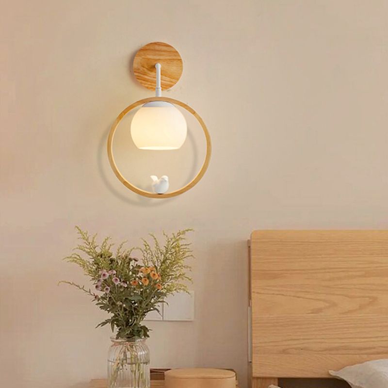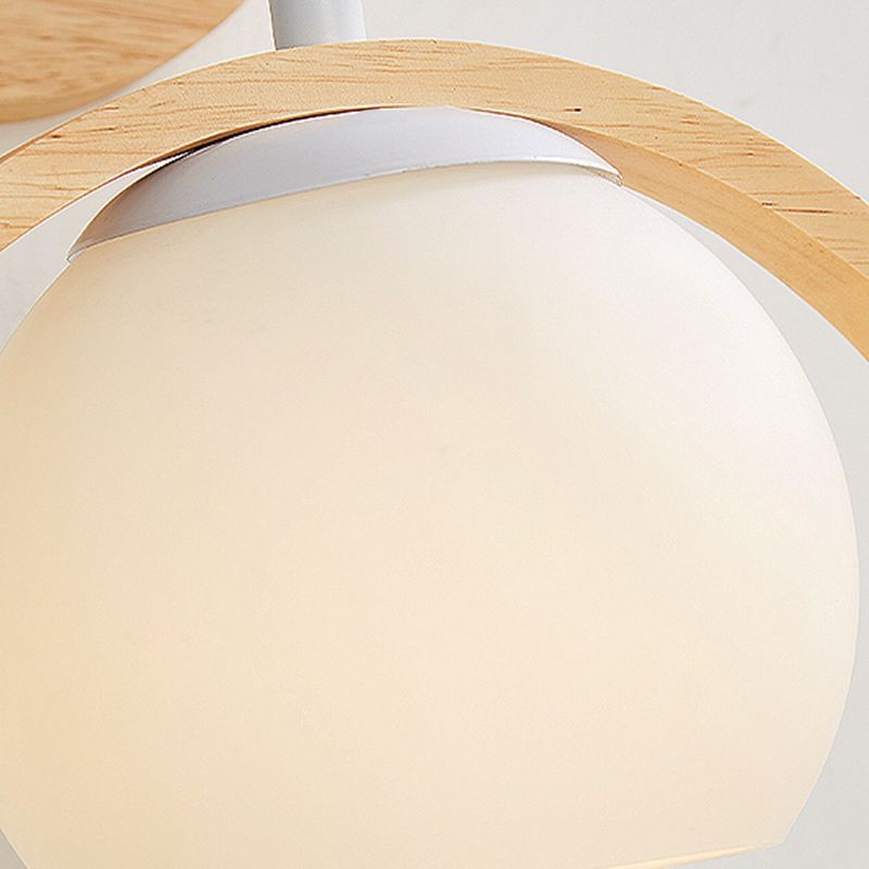 Modernism Wood Lighting Globe White Glass Shaded Wall Light for Foyer