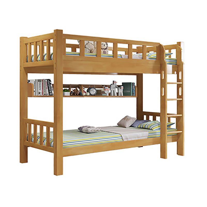 Natural Bunk Bed Solid Wood Bed with Guardrail and Built-In Ladder