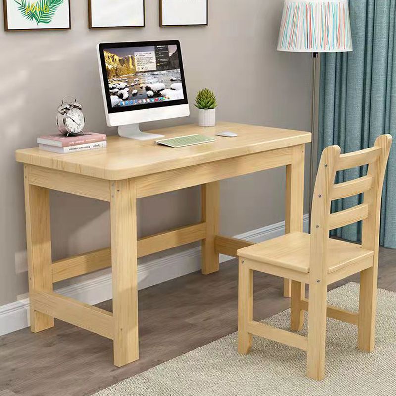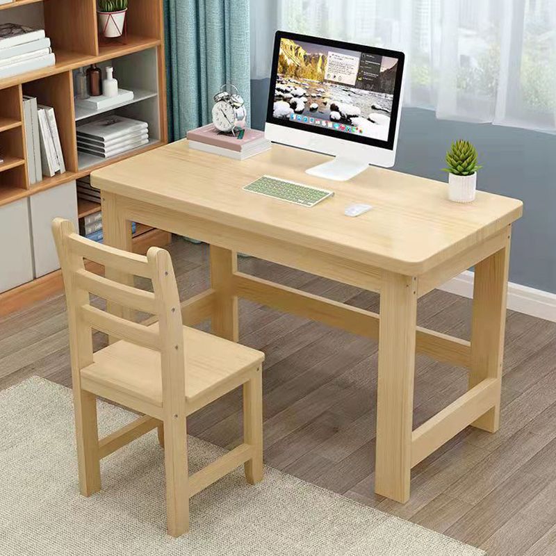 Natural Child Desk and Chair Modern Home Kids Writing Desk in Pine Wood