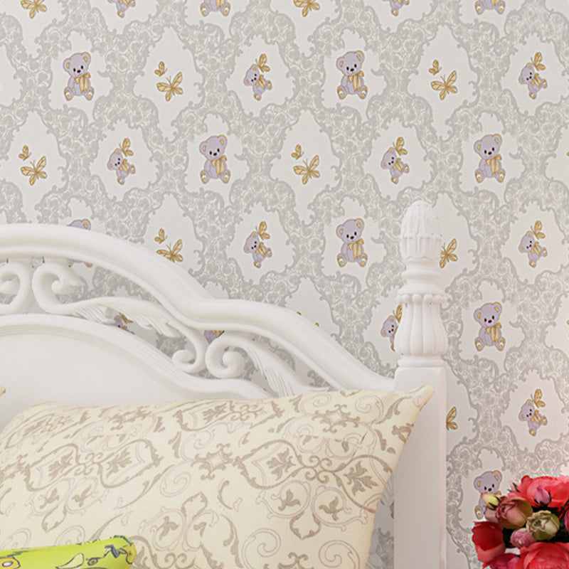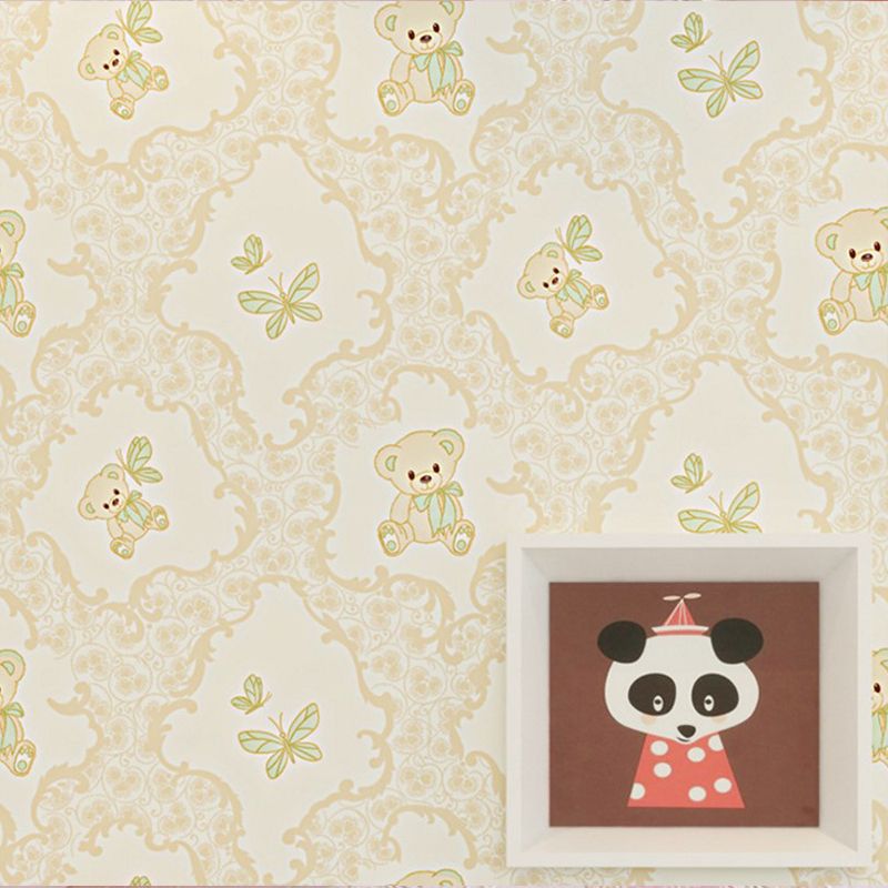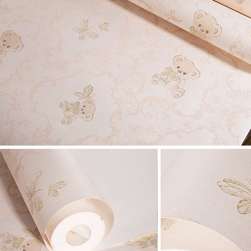 Natural Color Cartoon Bear Non-Pasted Wallpaper for Girls' Bedroom, 20.5 in x 33 ft
