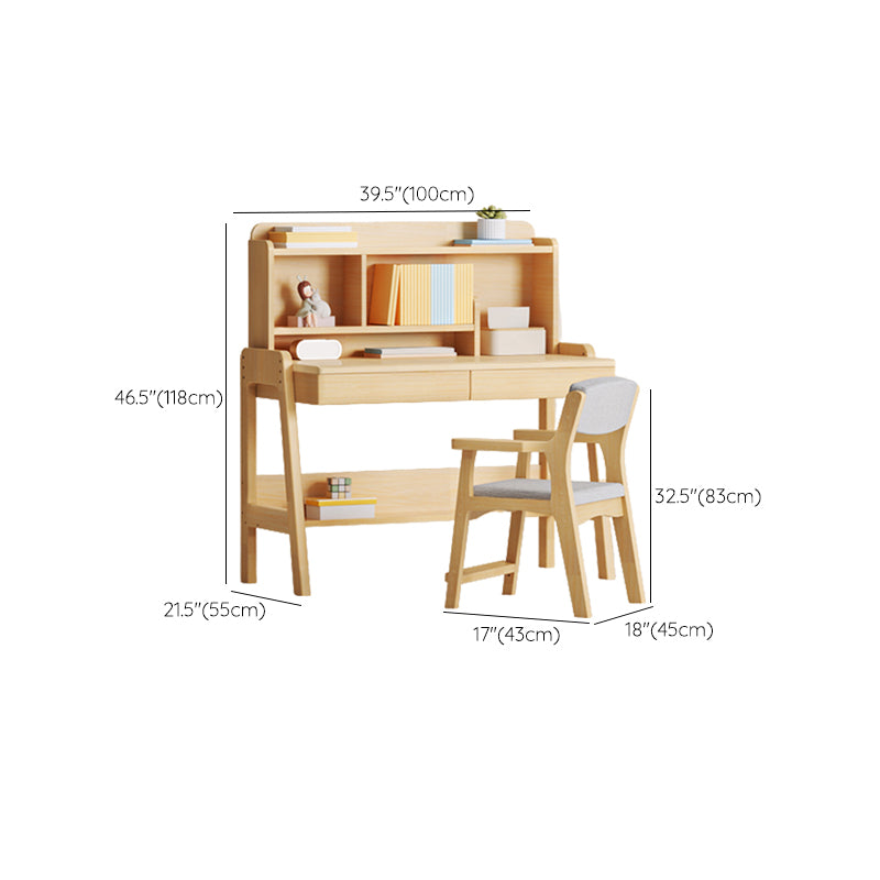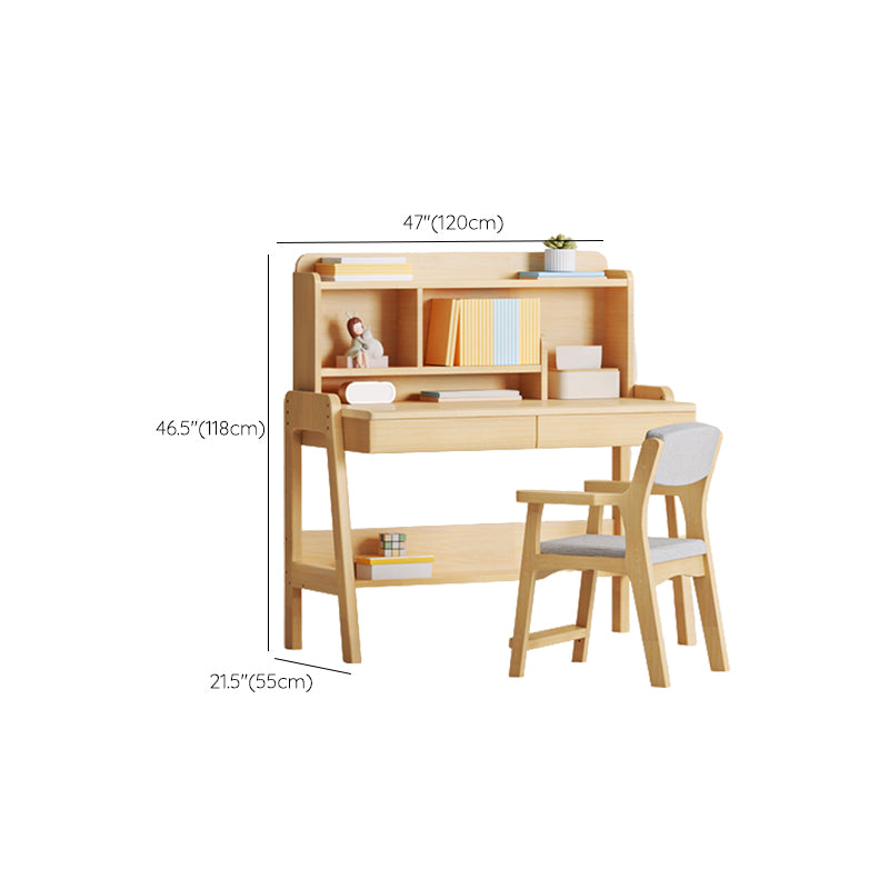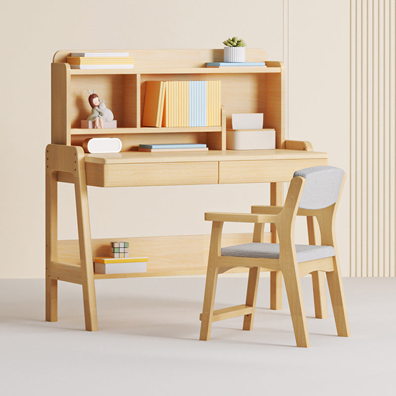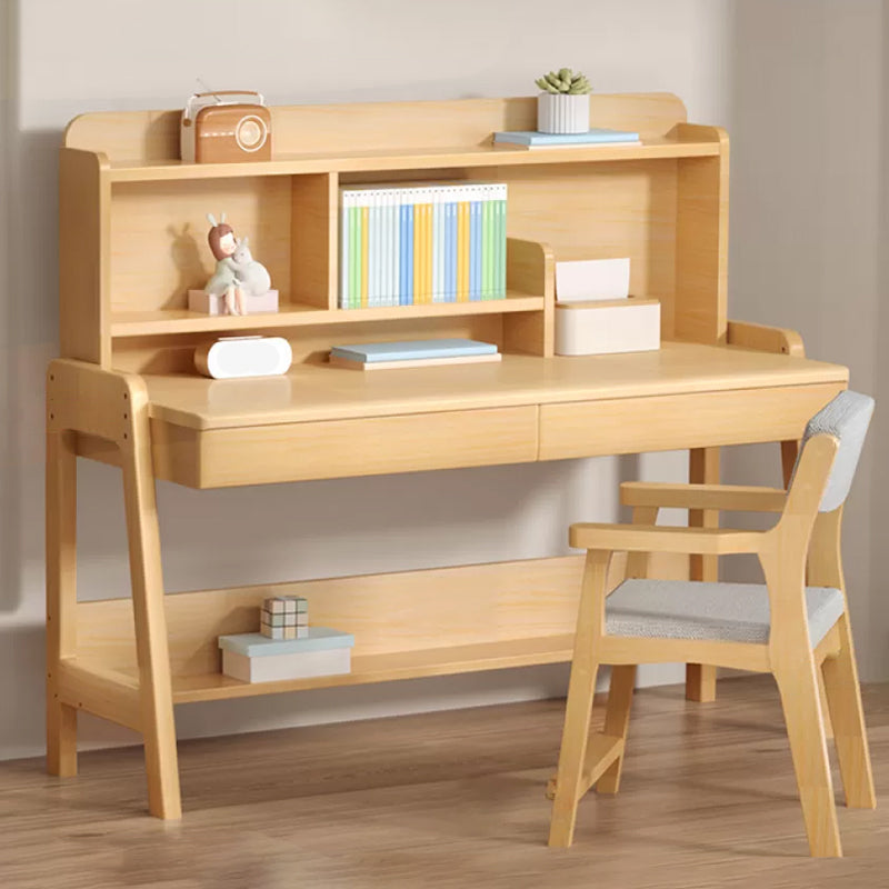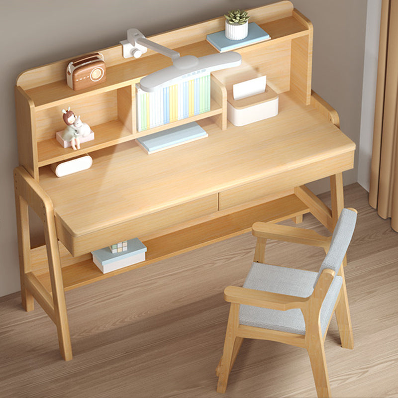 Natural Rubber Wood Children's Desk with Shelves and Drawers