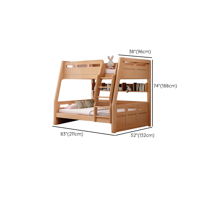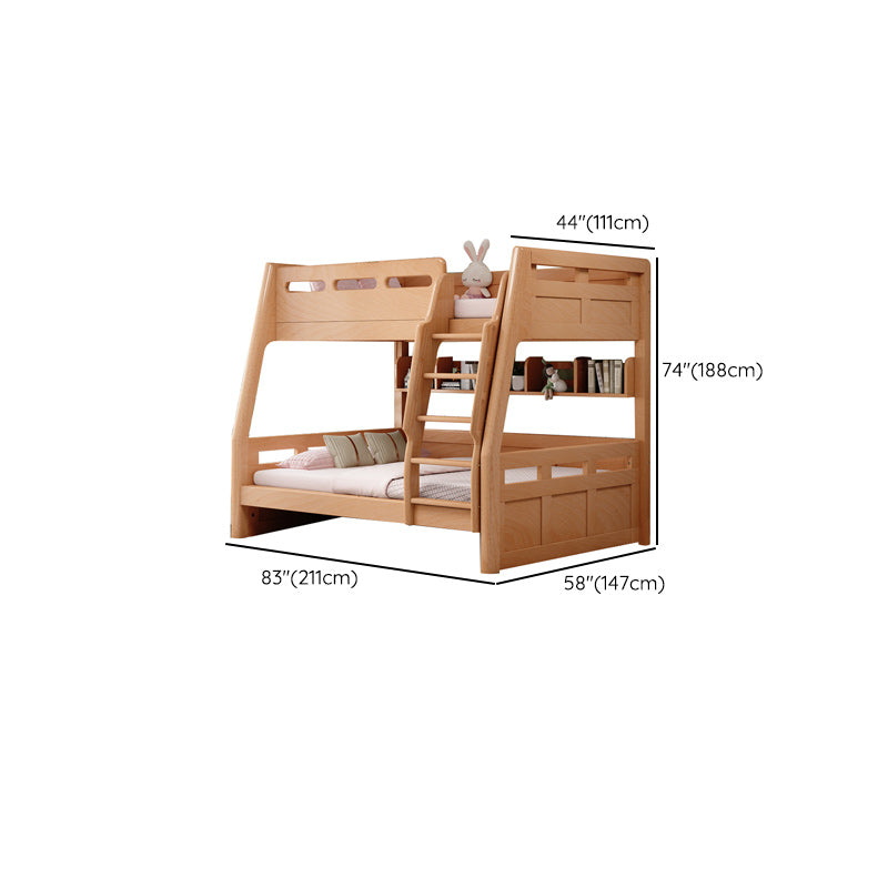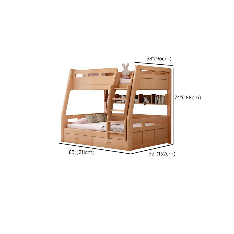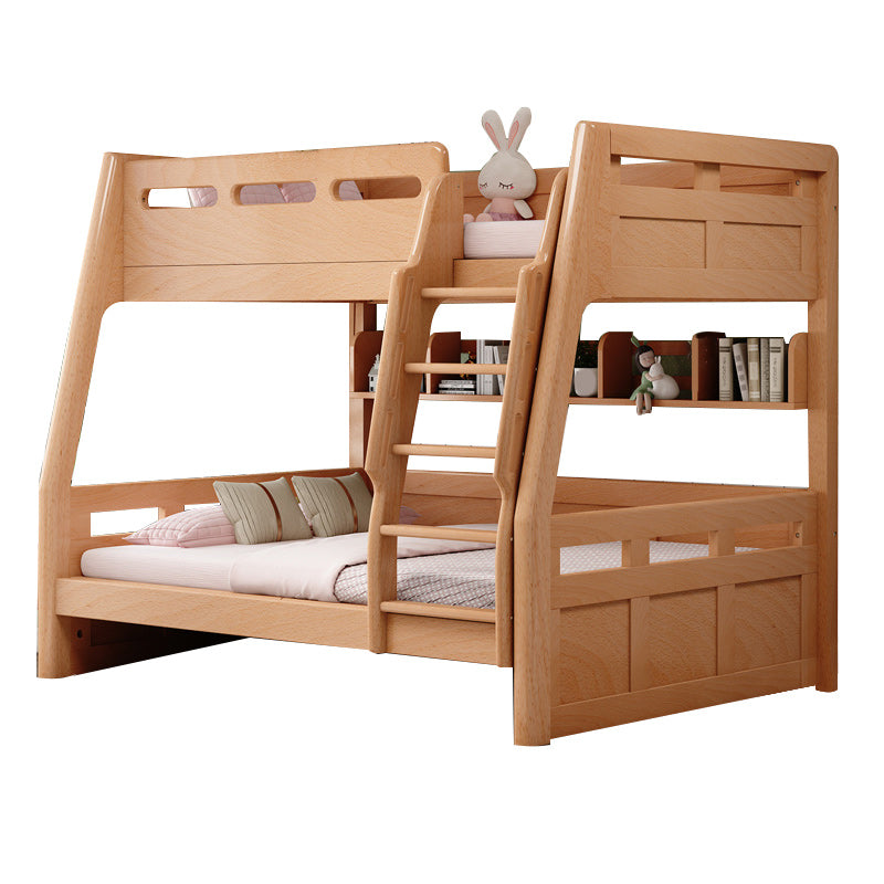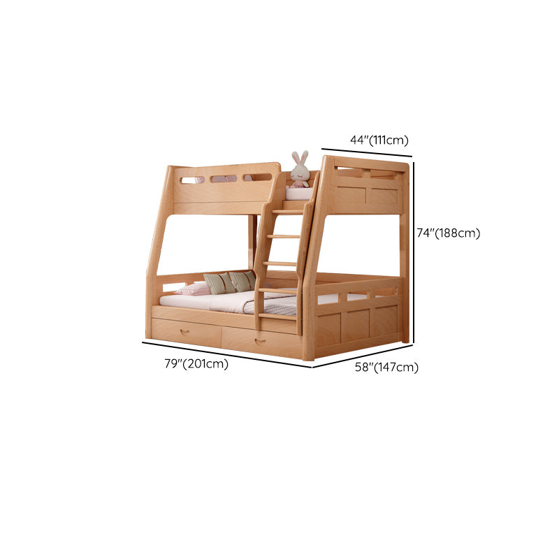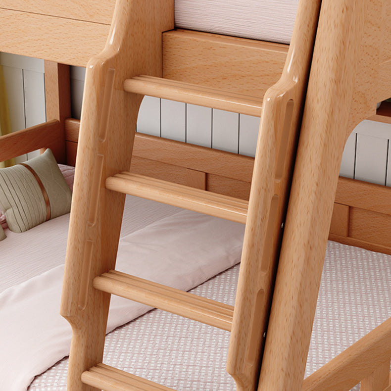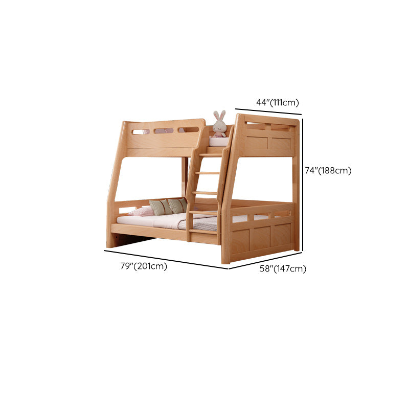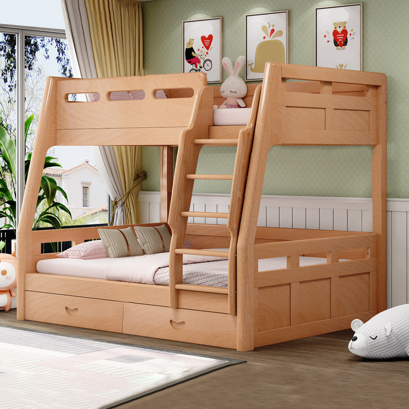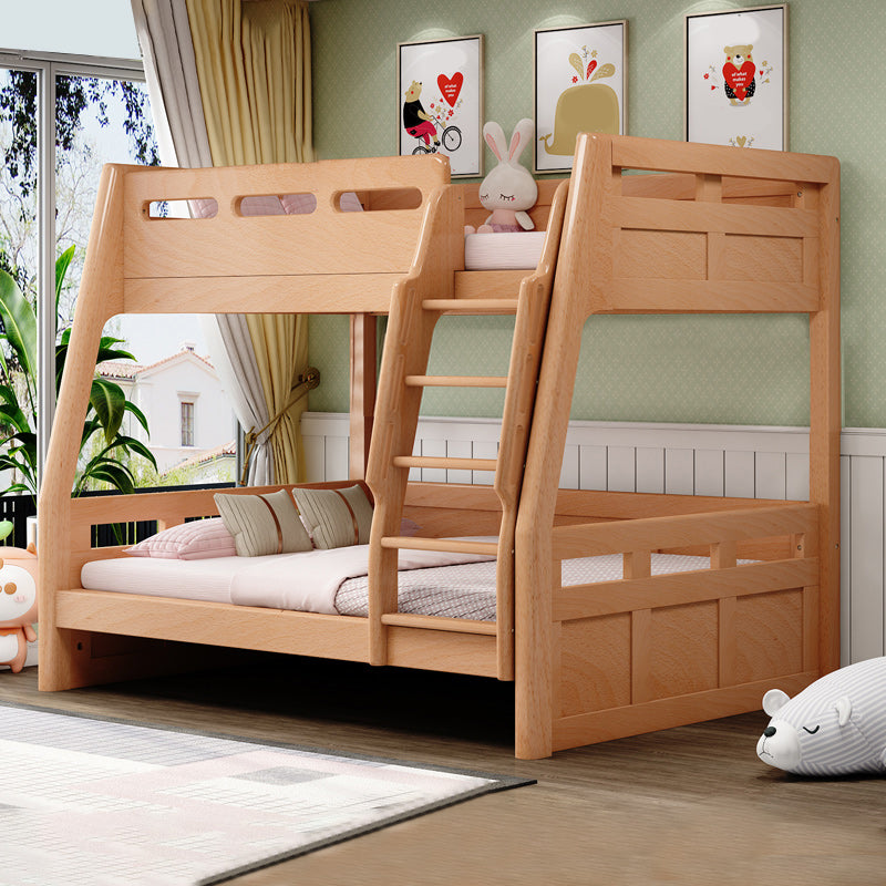 Natural Solid Wood Kids Bed Natural Bunk Bed with Guardrail and Mattress