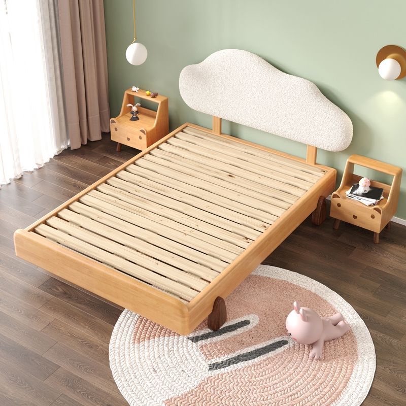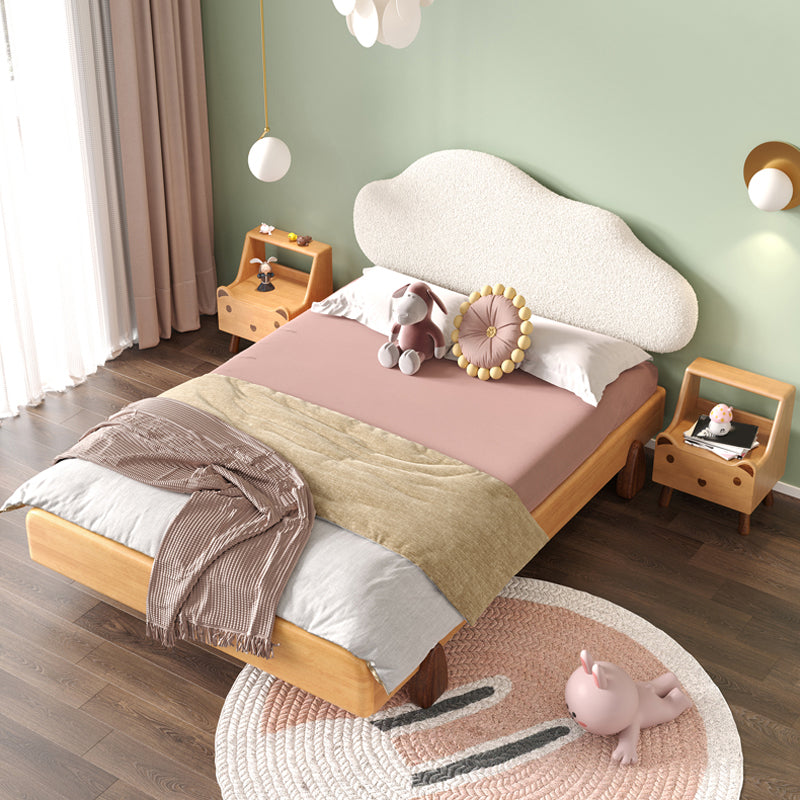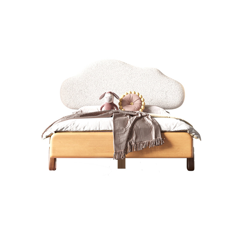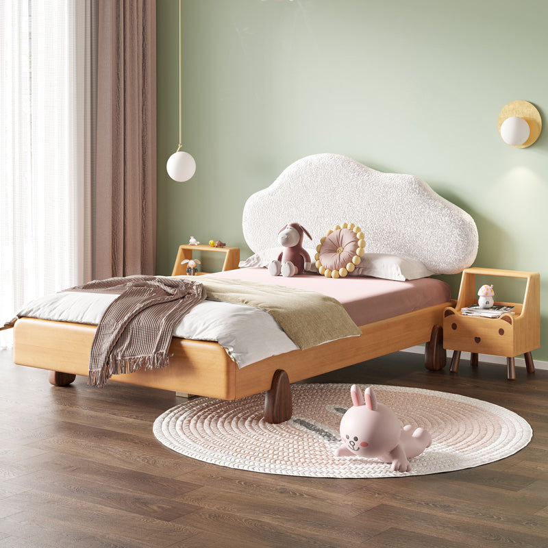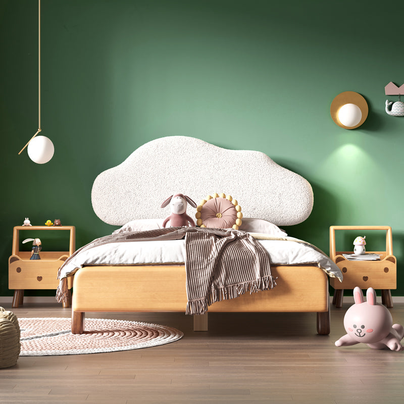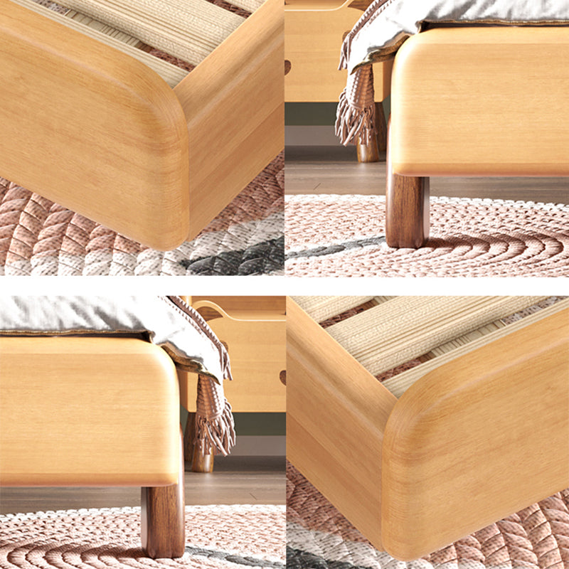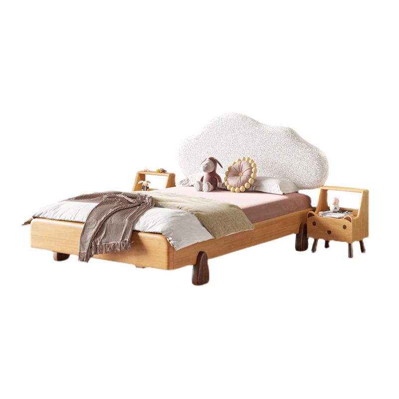 Natural Upholstered Bed Frame Modern Crow Shaped Heaboard Standard Bed