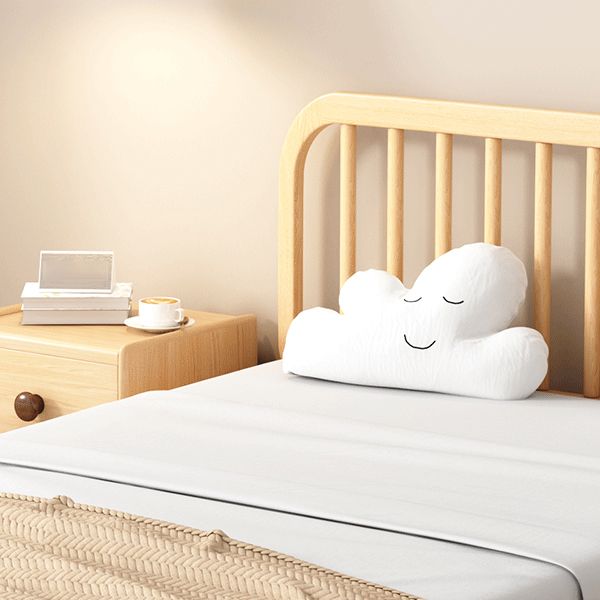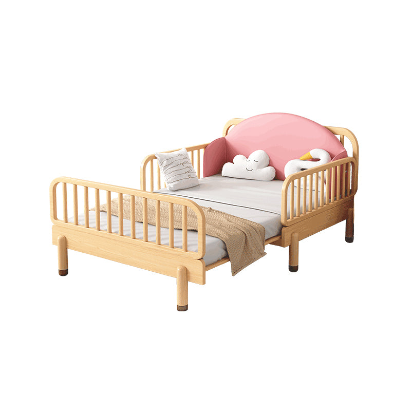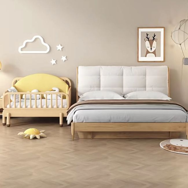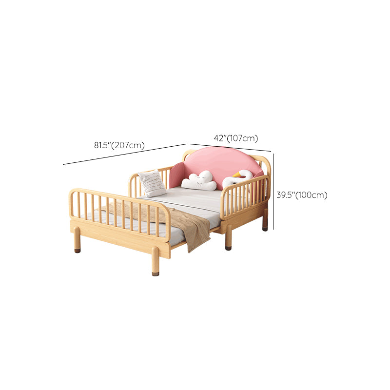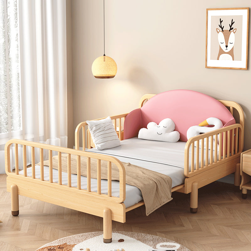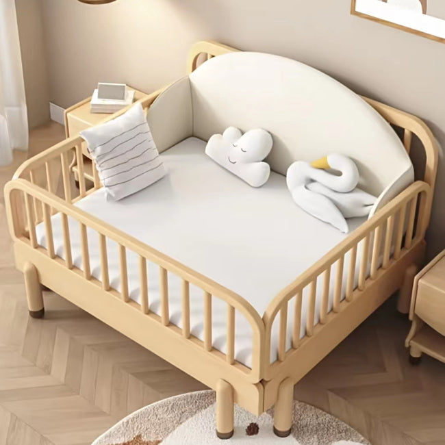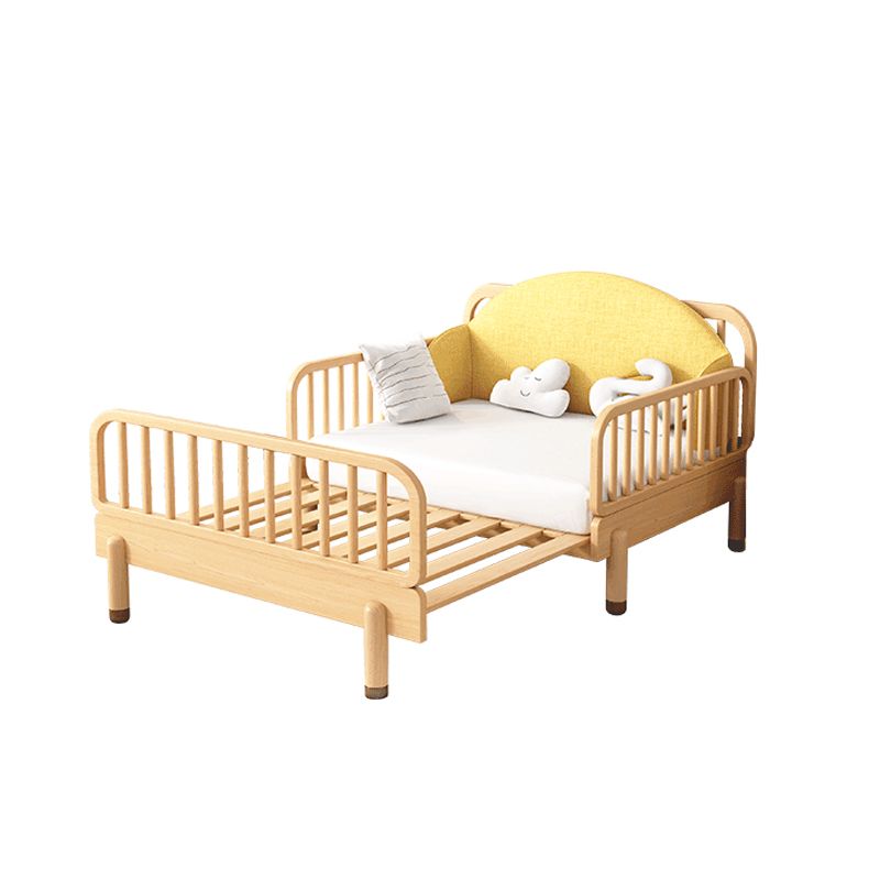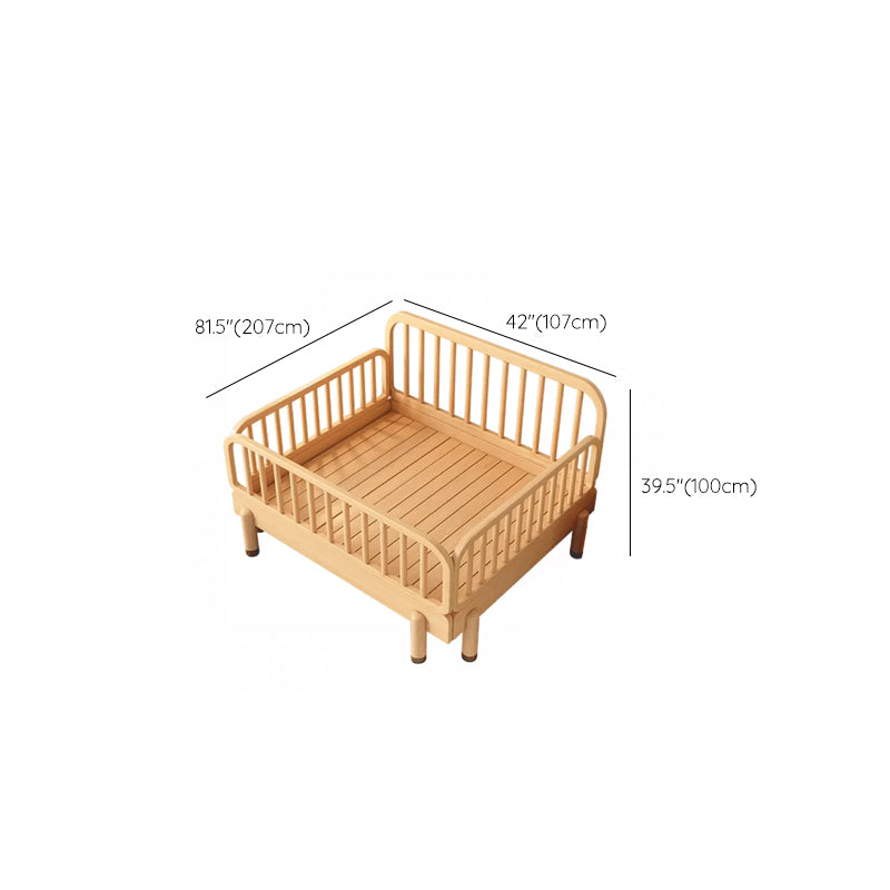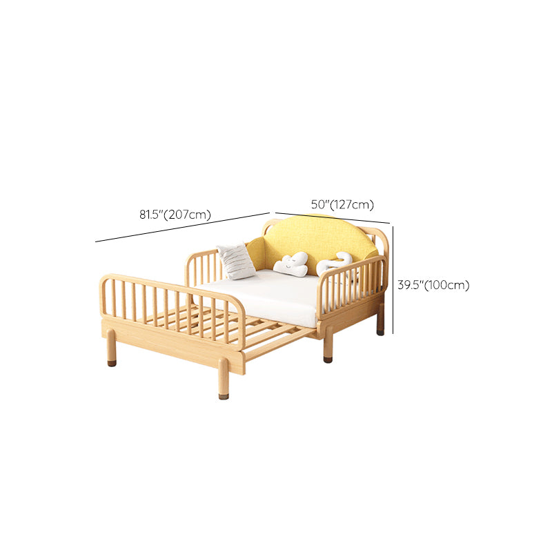 Natural Wooden Contemporary Bed Frame Upholstered Daybed with Detachable Guardrails