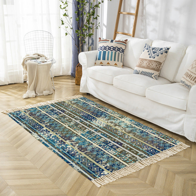Navy Graphic Carpet Polyester Modern Carpet Non-Slip Backing Carpet for Living Room