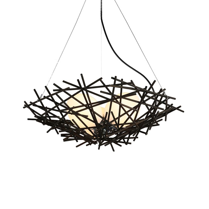 Nest Chandelier Lighting Japanese Bamboo 18"/22" Wide 3 Bulbs Coffee Ceiling Suspension Lamp