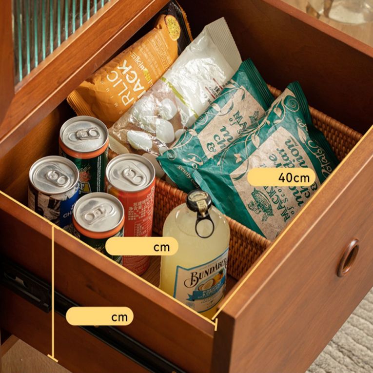 No Distressing Glass Paned Natural Solid Wood Accent Cabinet with Doors
