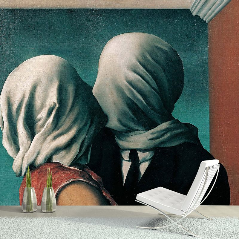 Non-Woven Large Grey Murals Surreal Masked Lover Kissing Pattern Wall Art, Made to Measure