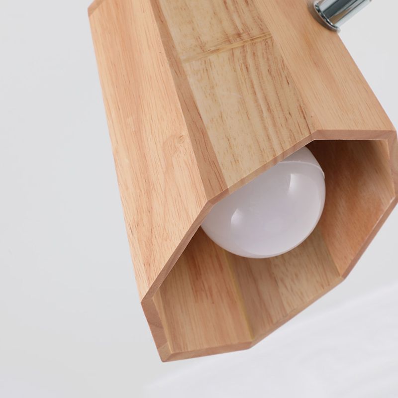 Nordic Beveled Hanging Light Wood 3/8 Heads Dining Room Chandelier Light Fixture in Beige