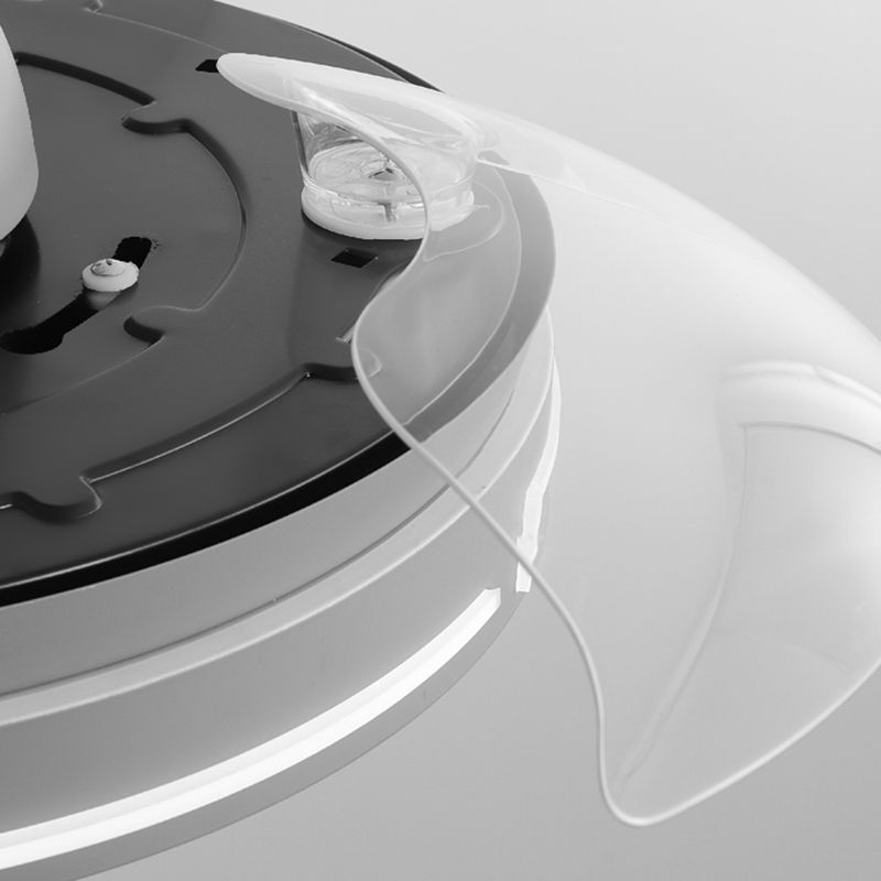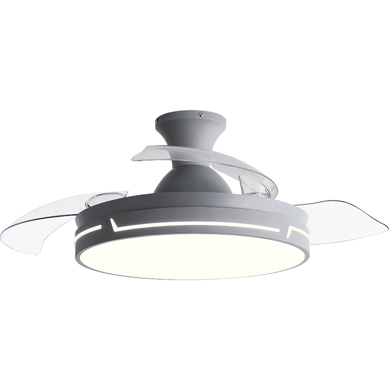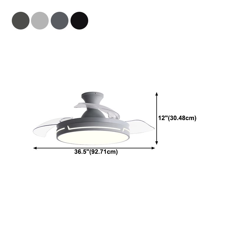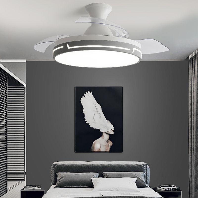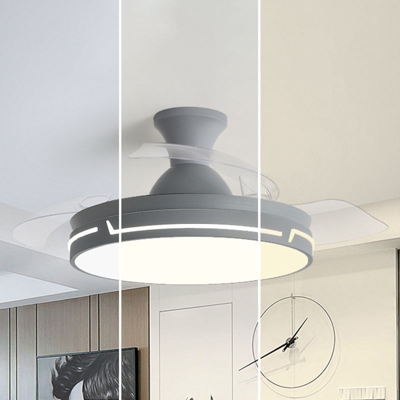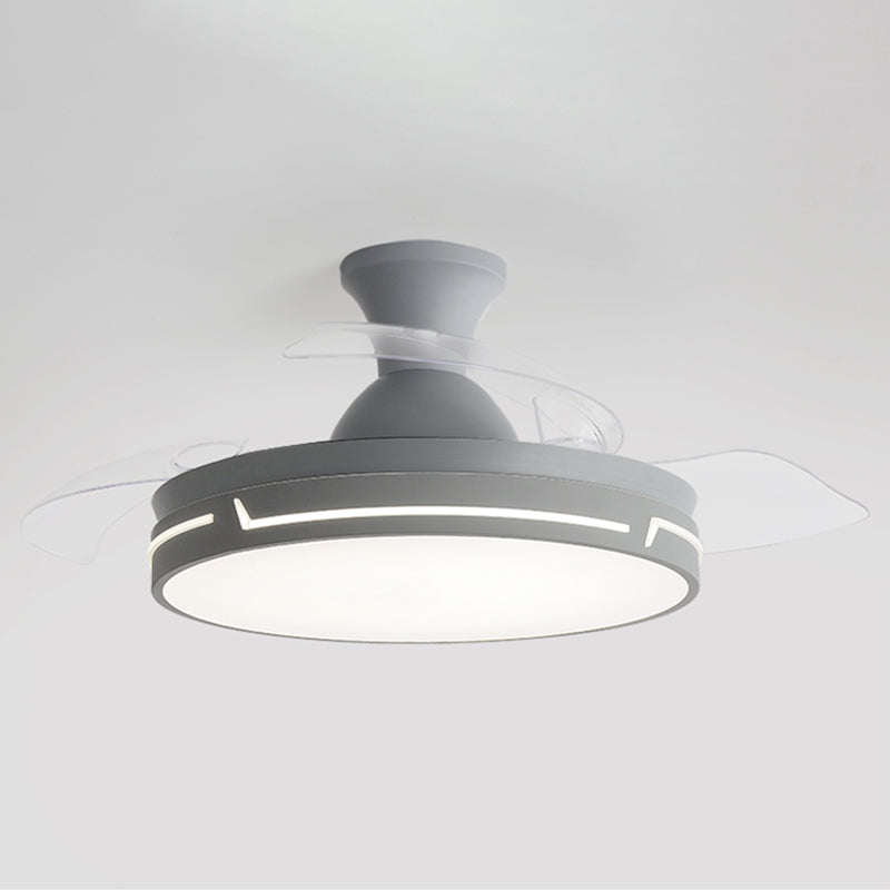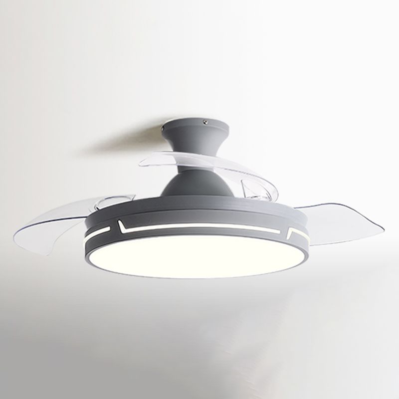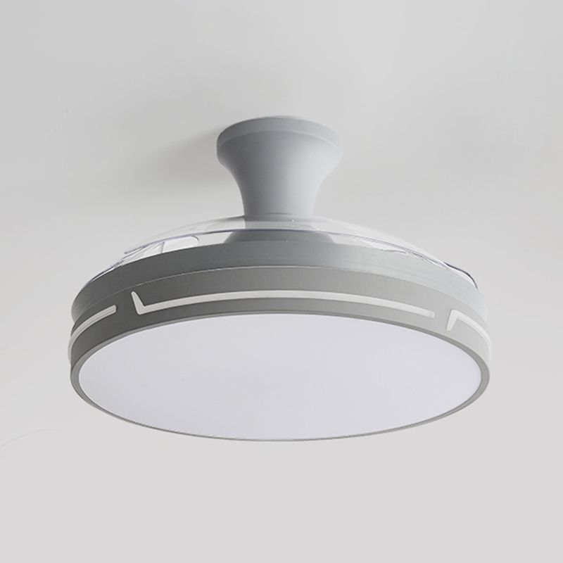 Nordic Drum Shade Fan Lamp Living Room LED Semi Flush Light with 3 Invisible Blades