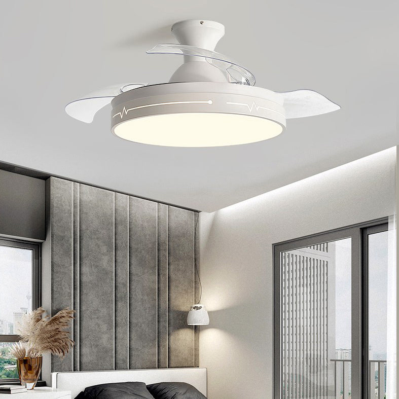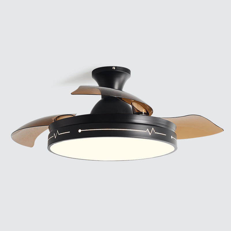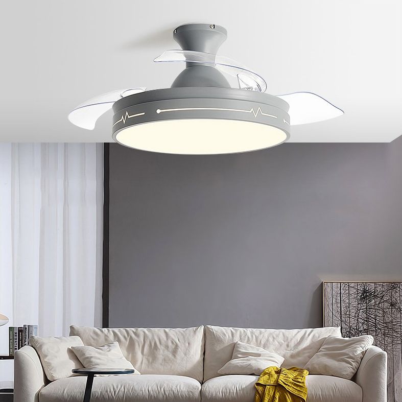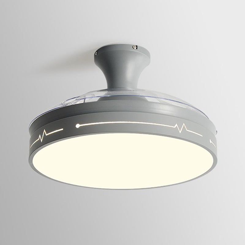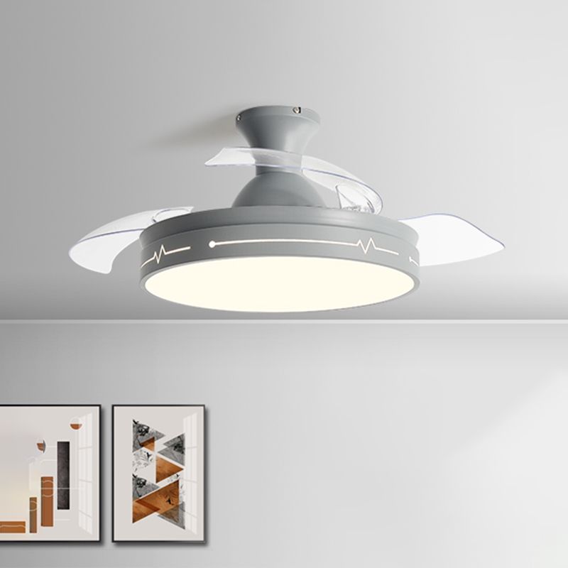 Nordic Drum Shaped Semi Flush Mount Fixture Acrylic Dining Room LED Ceiling Fan Light with Remote