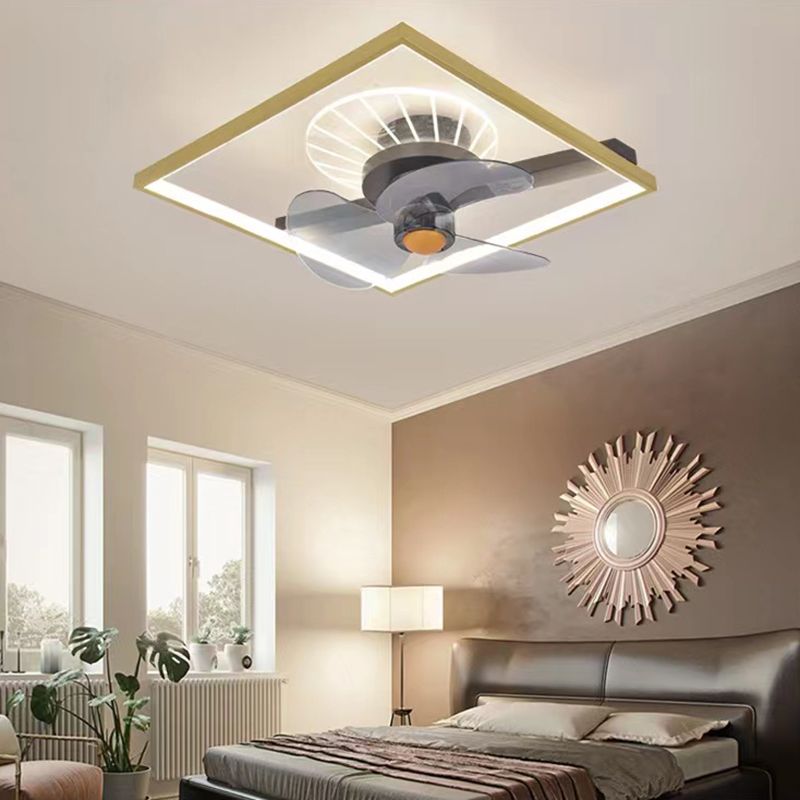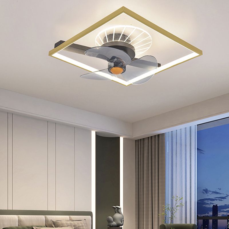 Nordic Geometry Flush Mount Fan Light Metallic Bedroom LED Semi Flush Ceiling Light
