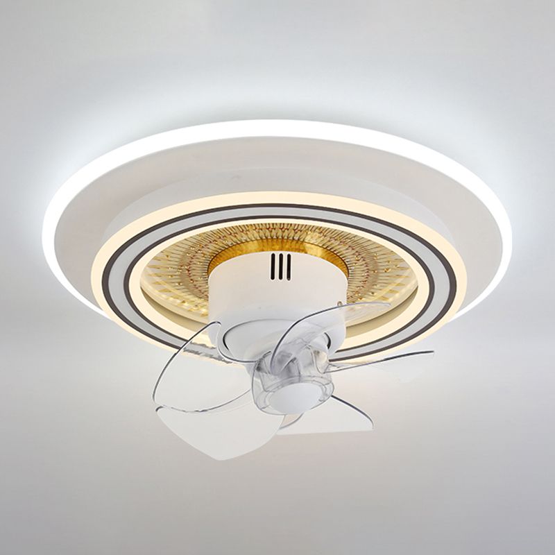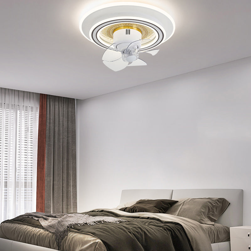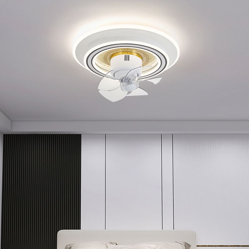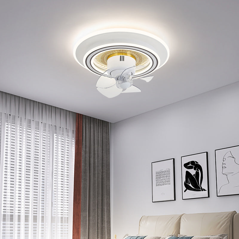 Nordic Round Fan Lamp Metal Bedroom LED Semi Flush Light with Swirlable Head