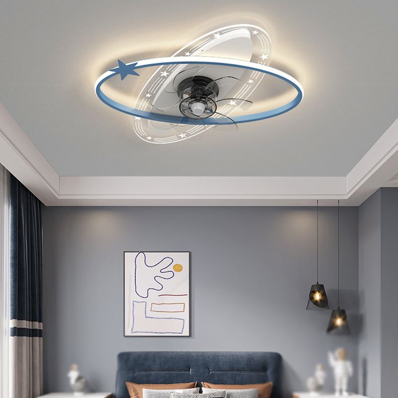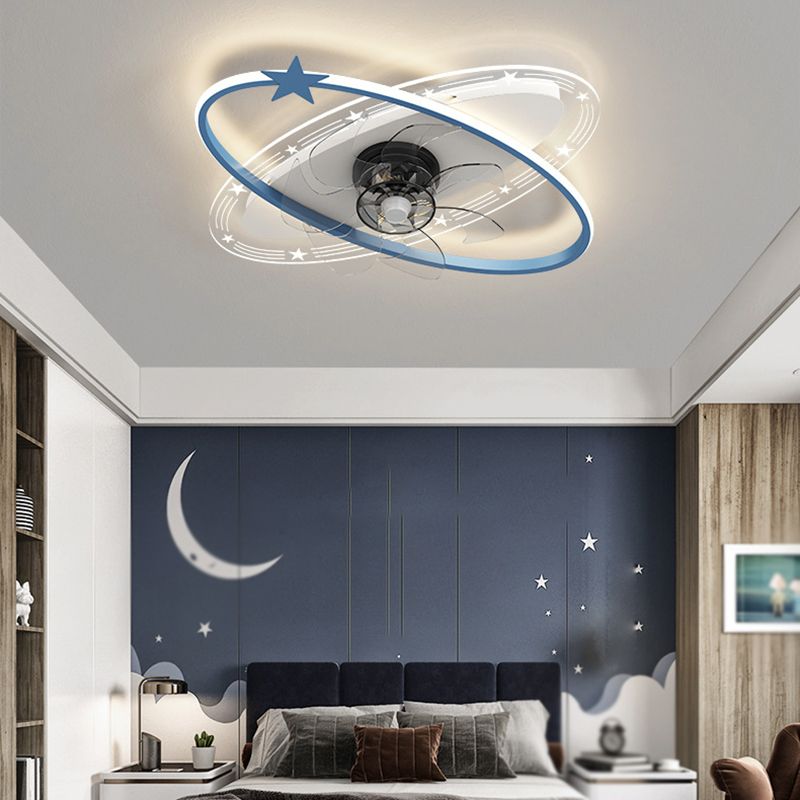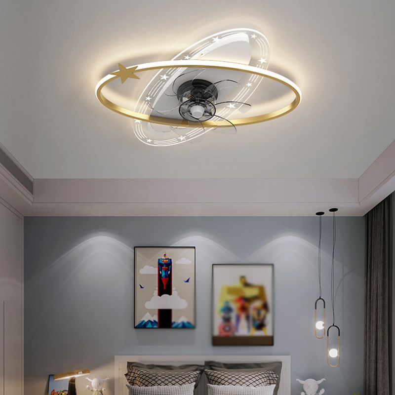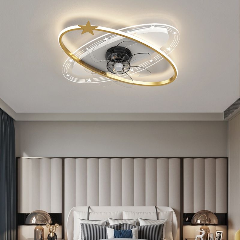 Nordic Style Geometric Fan Light Metal LED Flush Mount Light for Bedroom