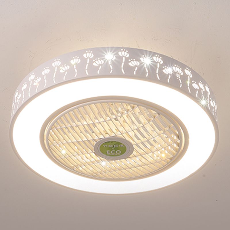 Nordic Style Iron Ceiling Fan Lamp Geometry Circle LED Ceiling Fan Light for Living Room