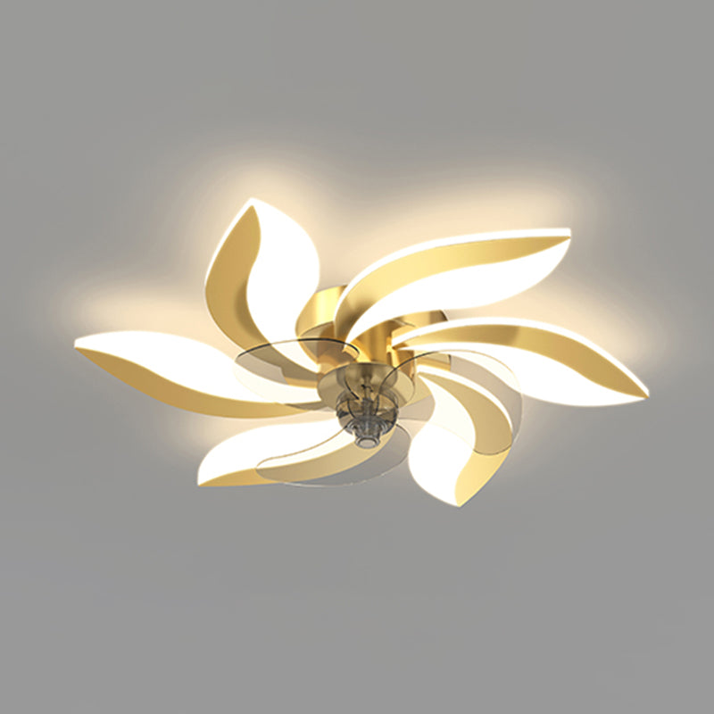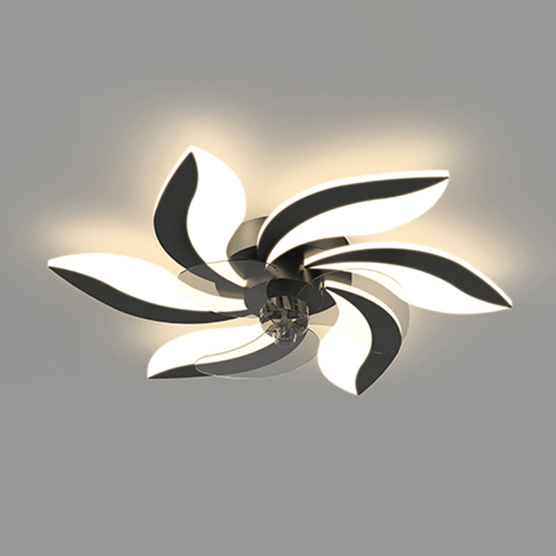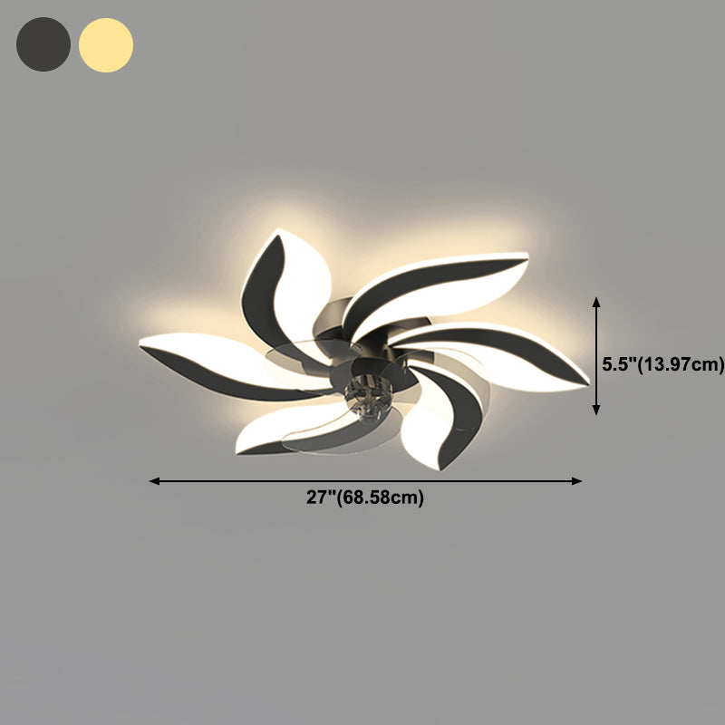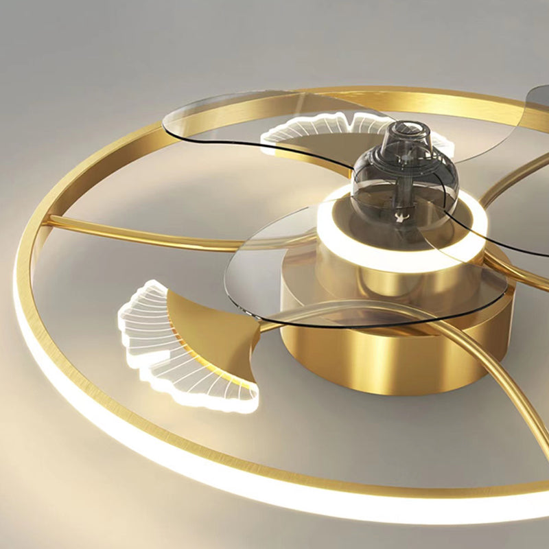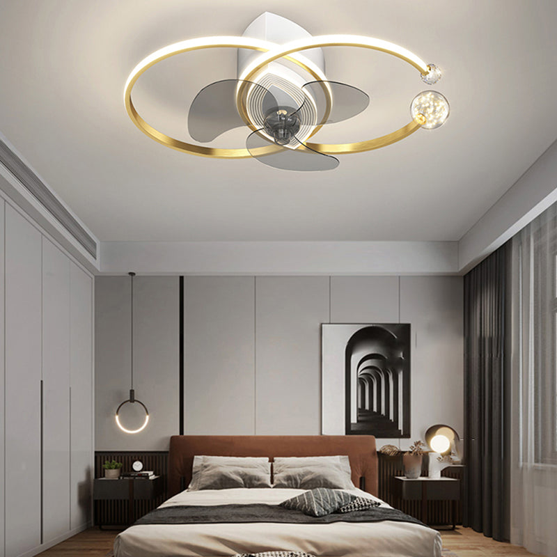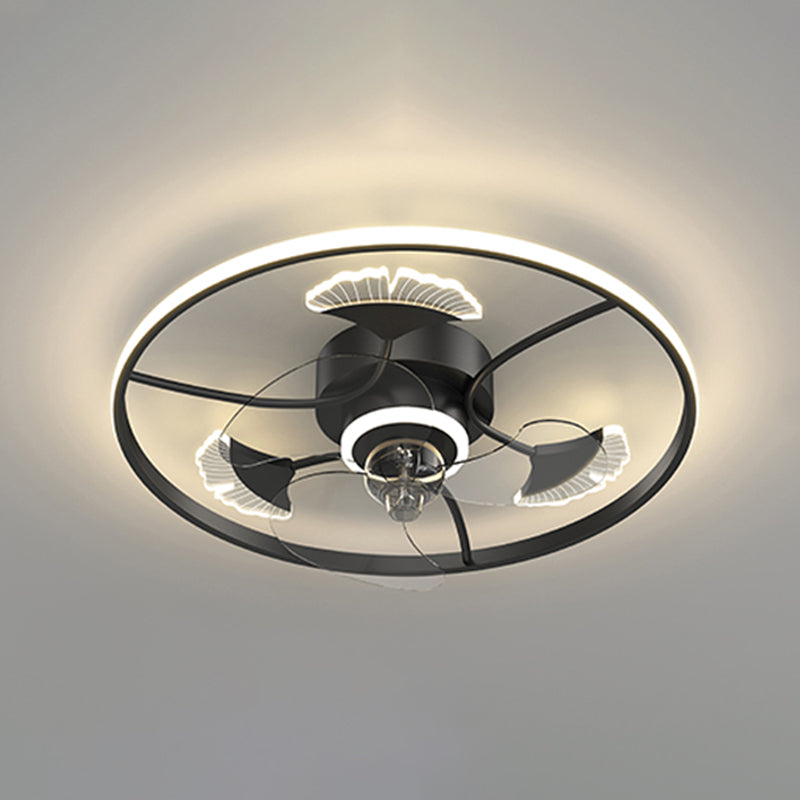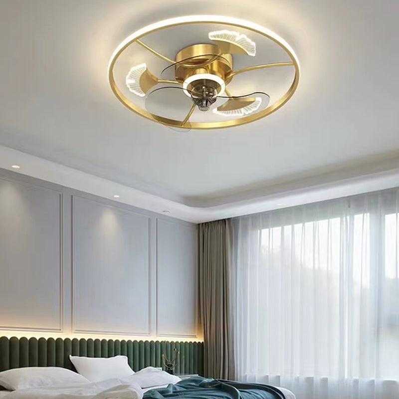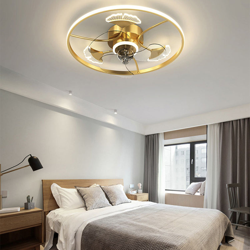 Nordic Style LED Fan Light Fixture Round Bedroom Semi Flush Mount Ceiling Lamp