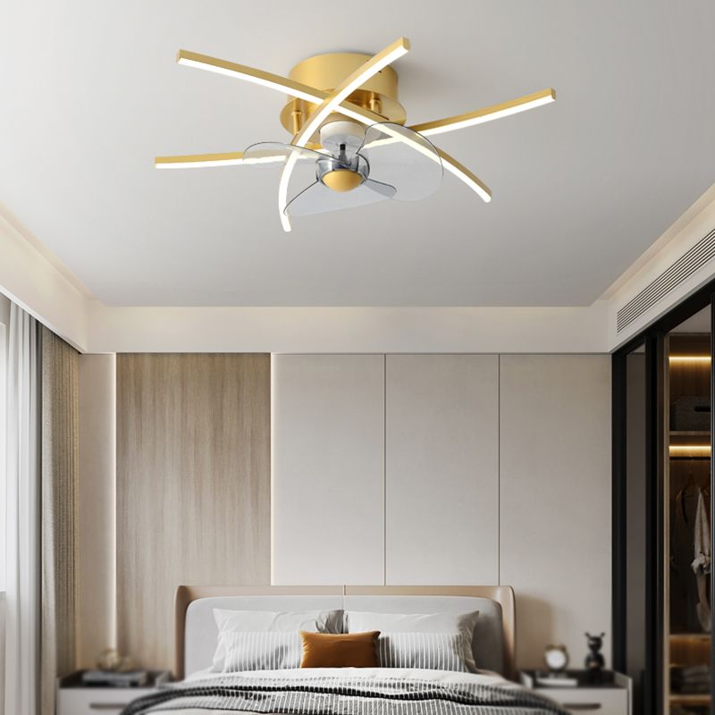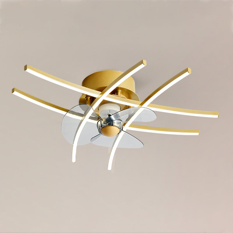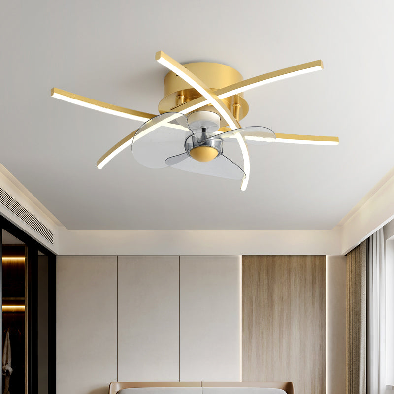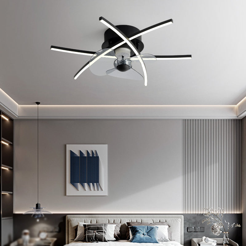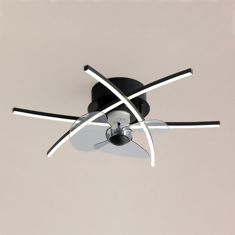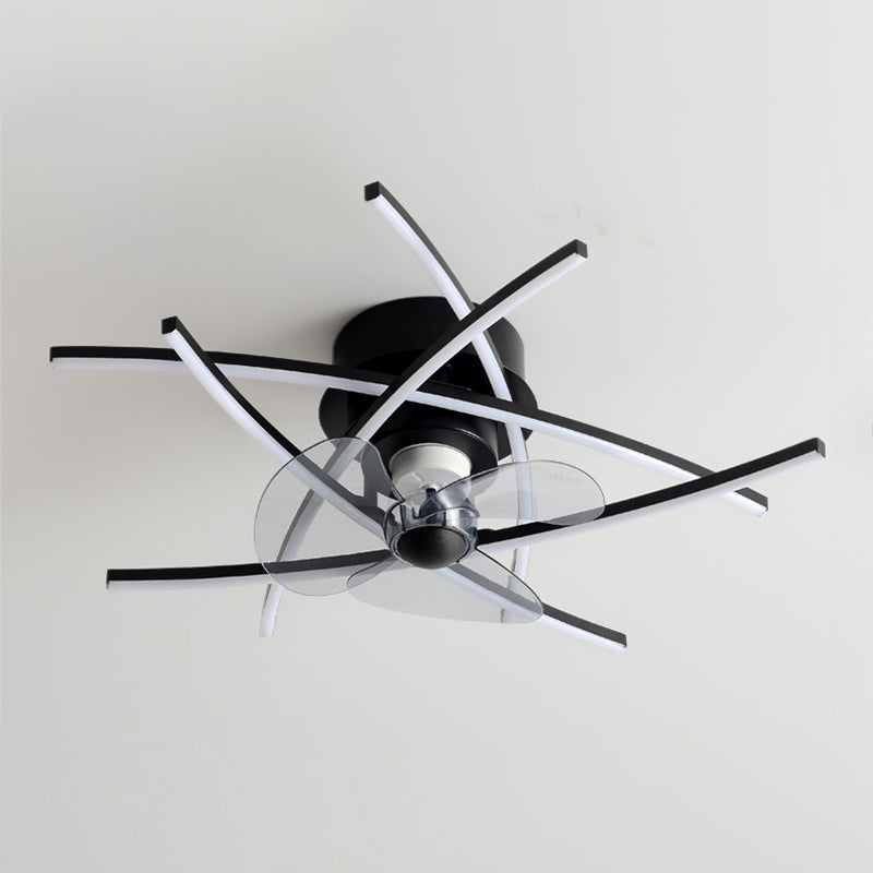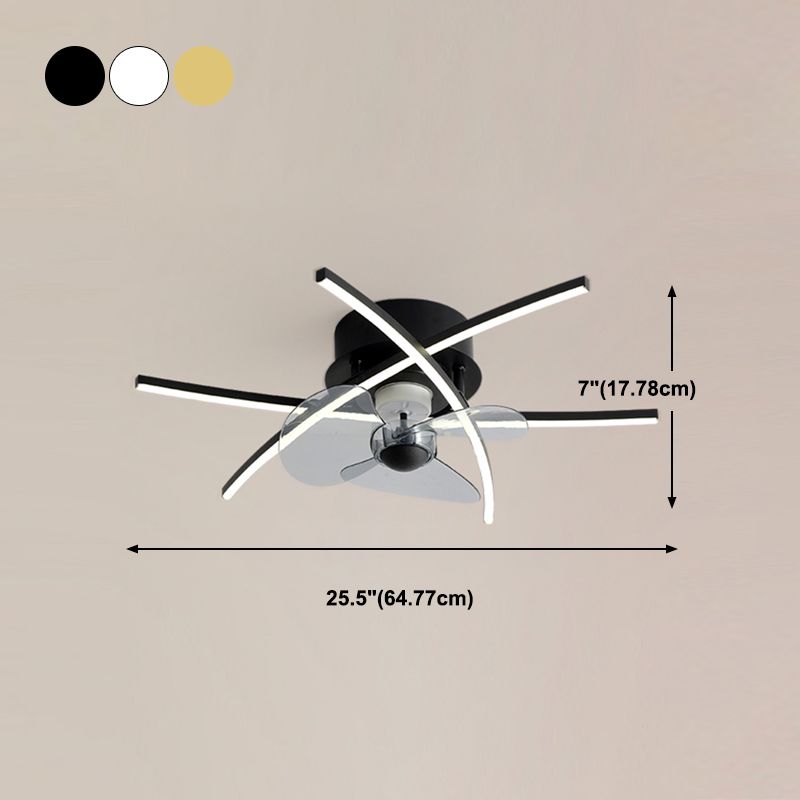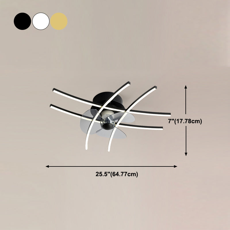 Nordic Style Linear Fan Light Metal 25.5" Wide LED Flush Mount Light for Bedroom