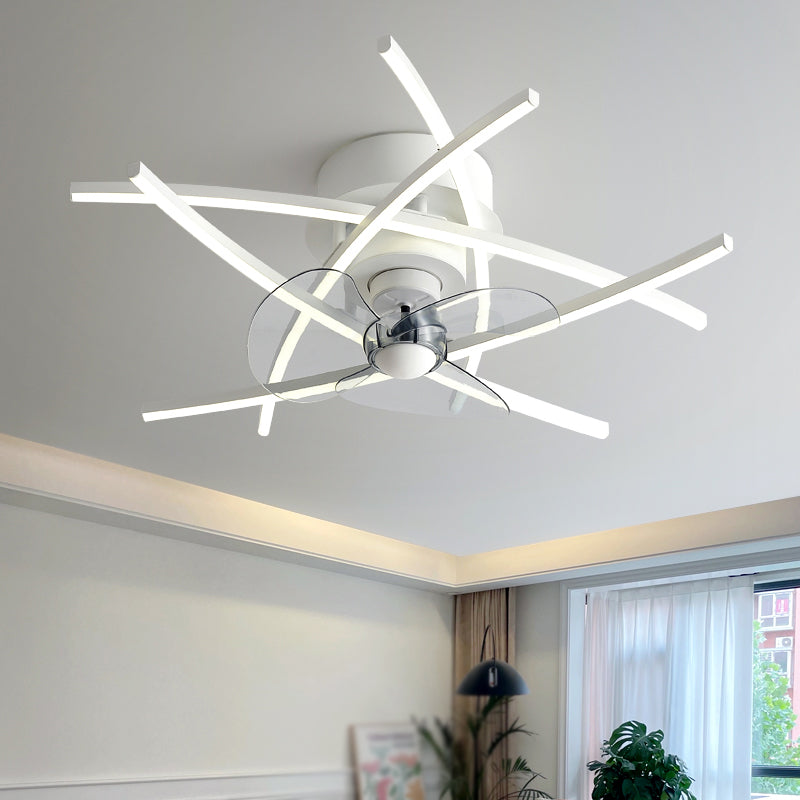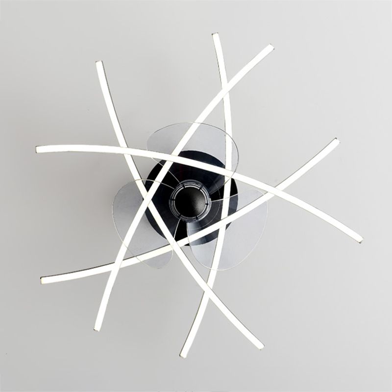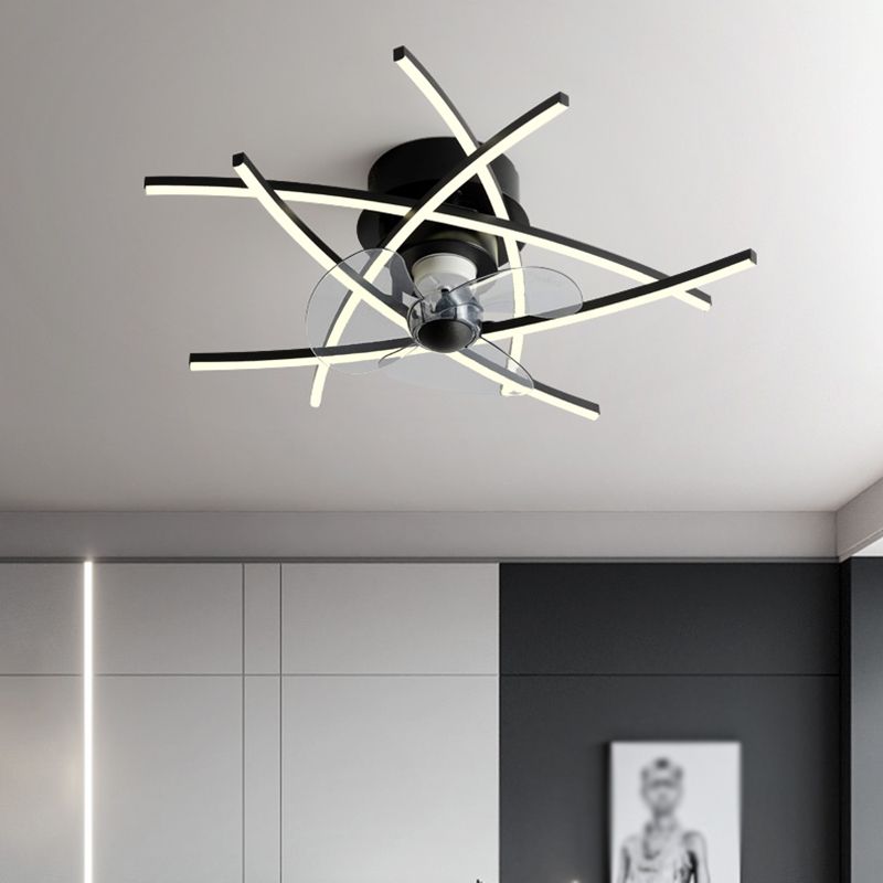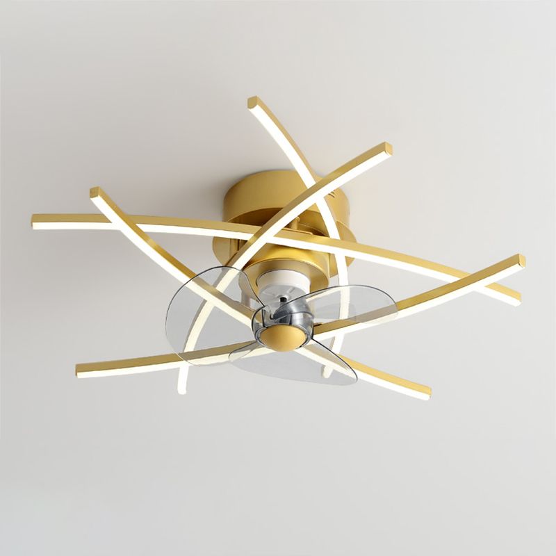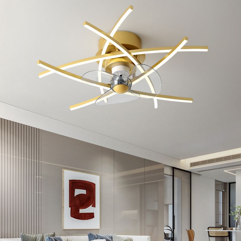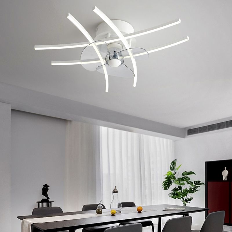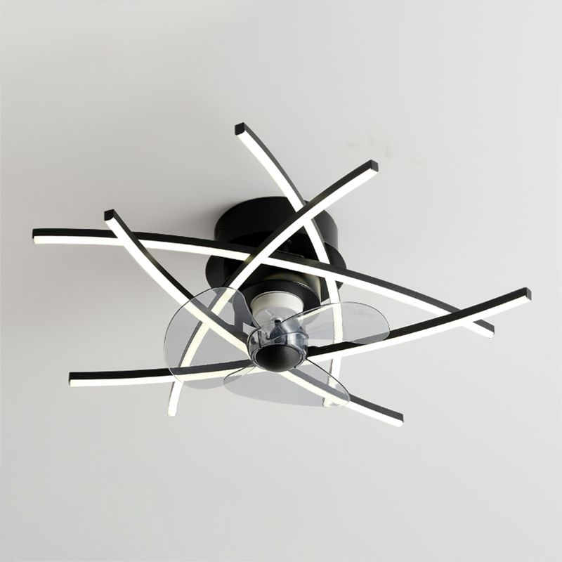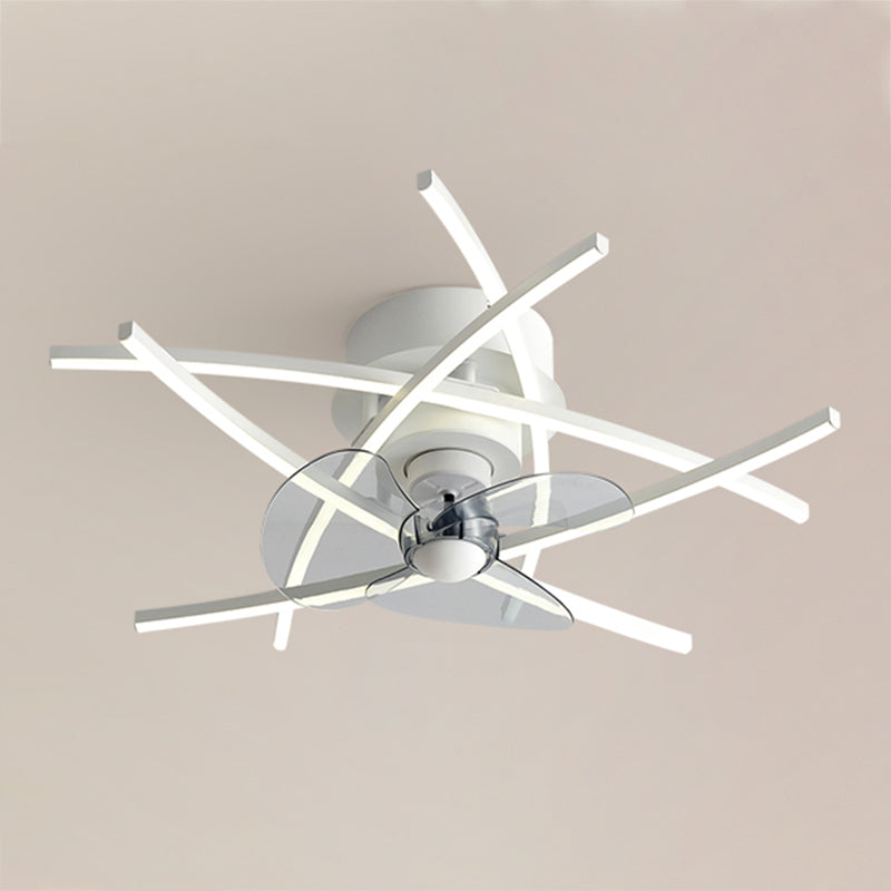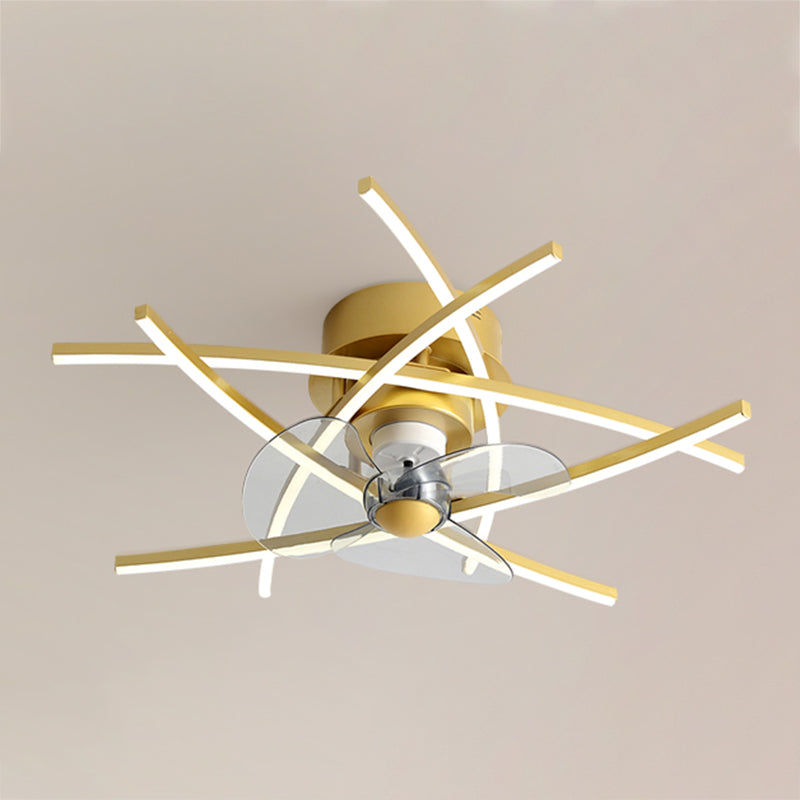 Nordic Style Linear Fan Light Metal 25.5" Wide LED Flush Mount Light for Bedroom