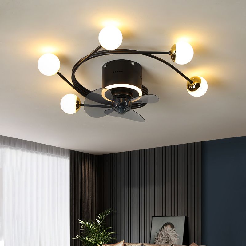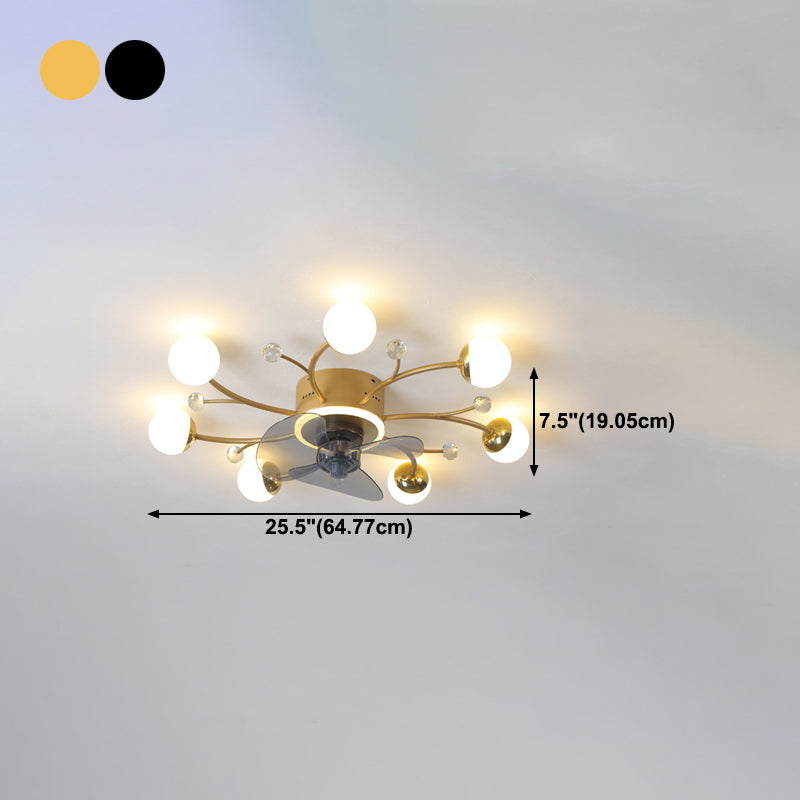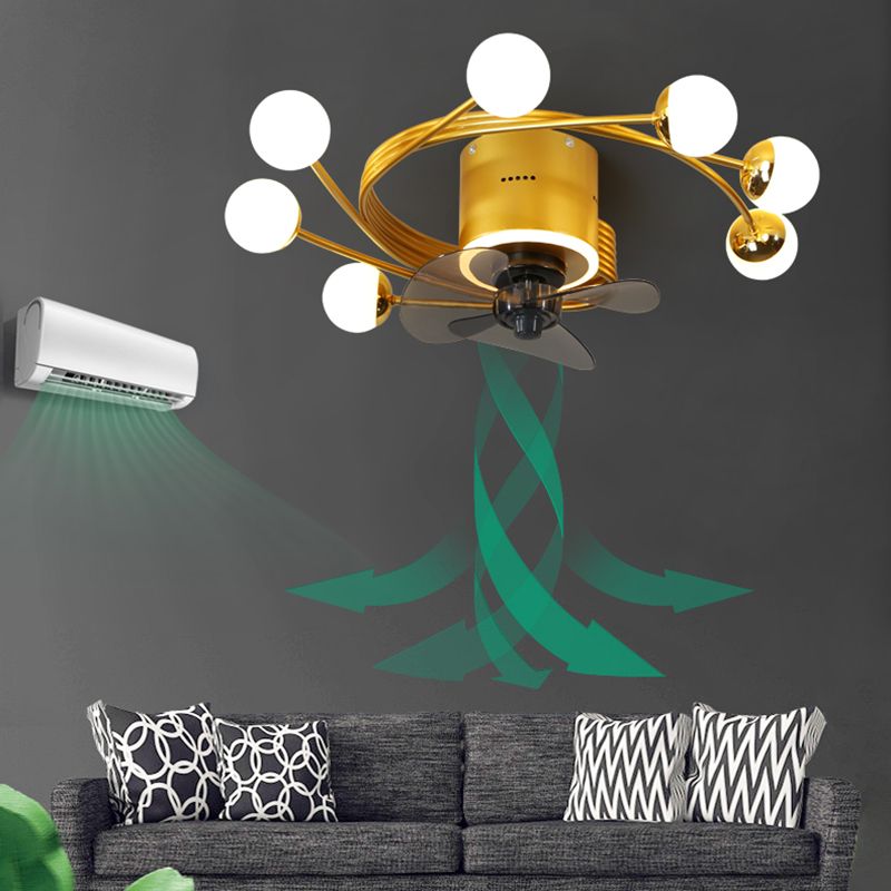 Nordic Style Metal Ceiling Fan Lamp Ball Shape LED Ceiling Fan Light for Living Room
