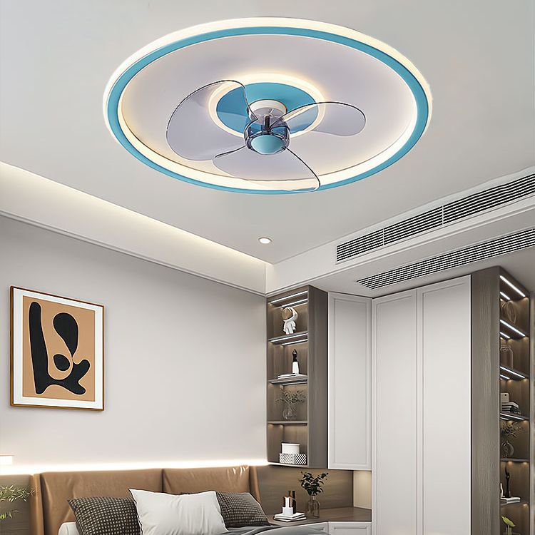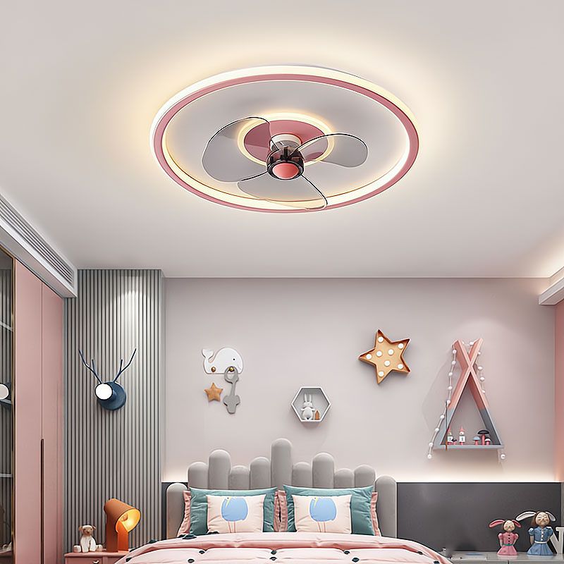 Nordic Style Metal Ceiling Fan Lamp Circle Shape Colorful Ceiling Fan Light for Bedroom