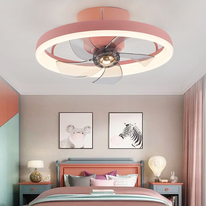 Nordic Style Metal Ceiling Fan Lamp Round Shape Colorful Ceiling Fan Light for Bedroom