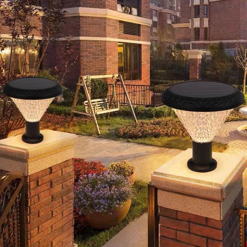 Nordic Style Outdoor Light Geometry Shape Solar Energy Pillar Lamp for Outdoor