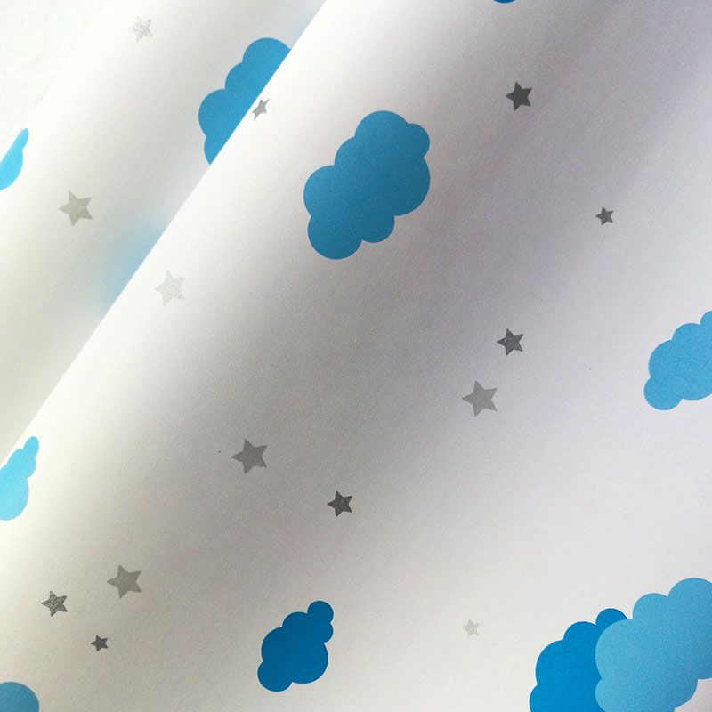 Nordic Wallpaper Roll in Blue and White Cartoon Cloud Wall Covering for Kid, 39.5'L x 23.5"W, Self-Adhesive
