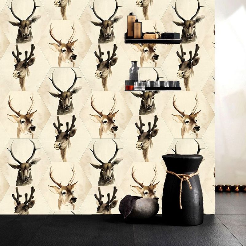 Novelty Deer Head Wallpaper Panels Black-Brown Pick Up Sticks Wall Decor for Home