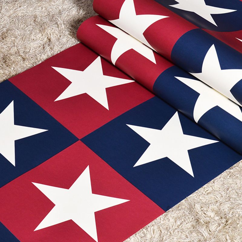 Novelty Kids Peel Stick Wallpaper with Star Pattern Red-Blue Wall Covering, Easy to Remove