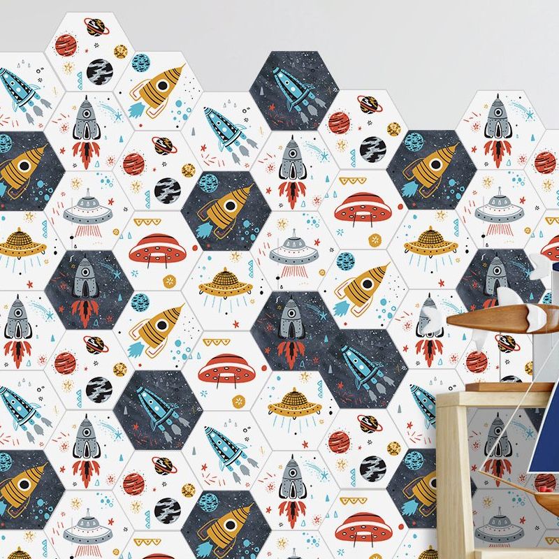 Novelty Kids Wallpaper Panel Set with Rocket and UFO Pattern Yellow Self Sticking Wall Covering