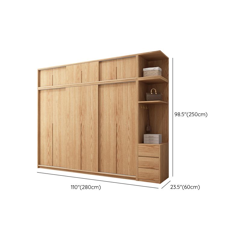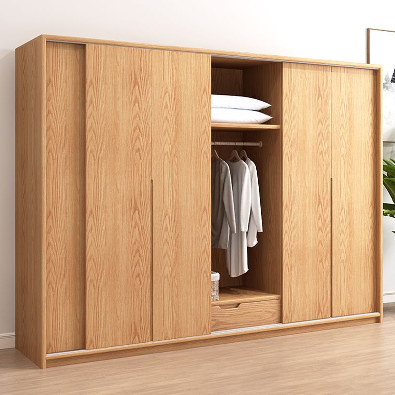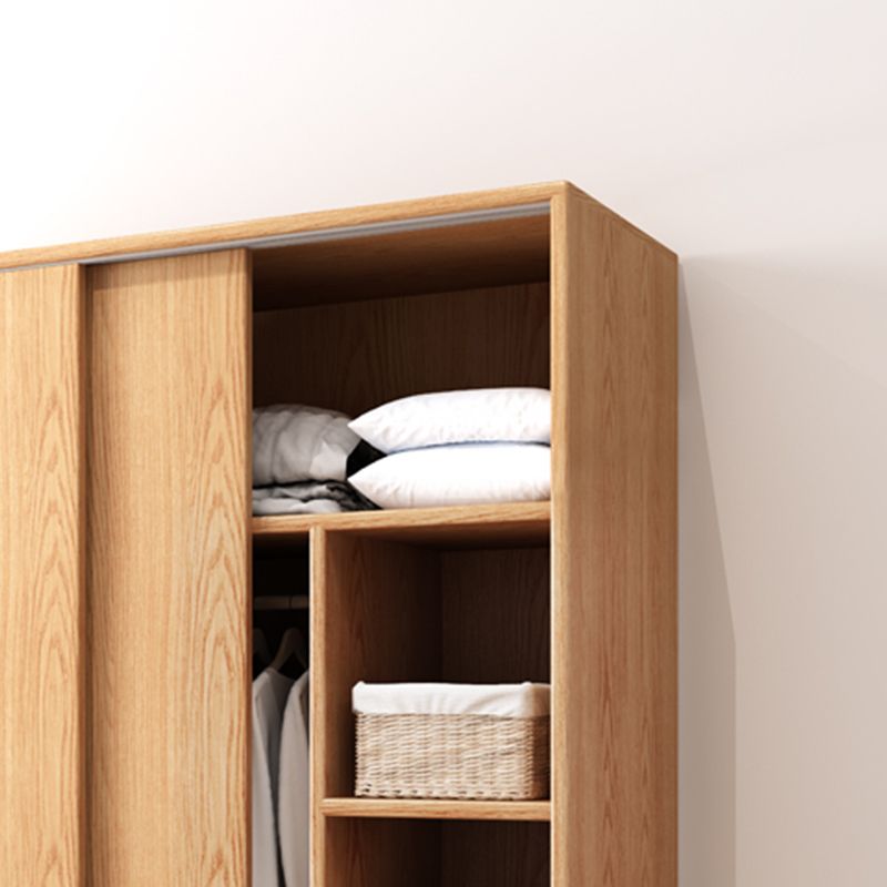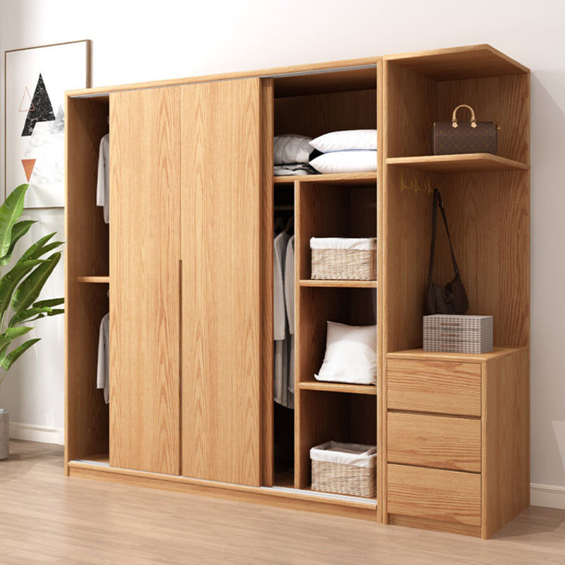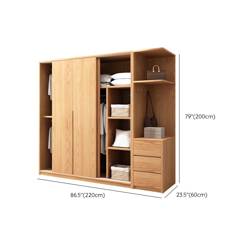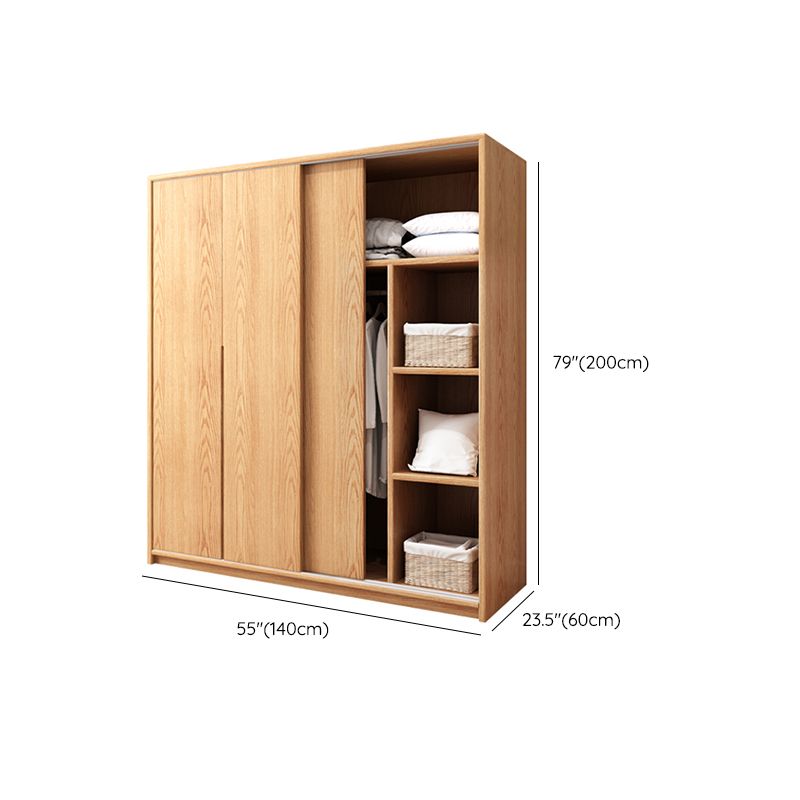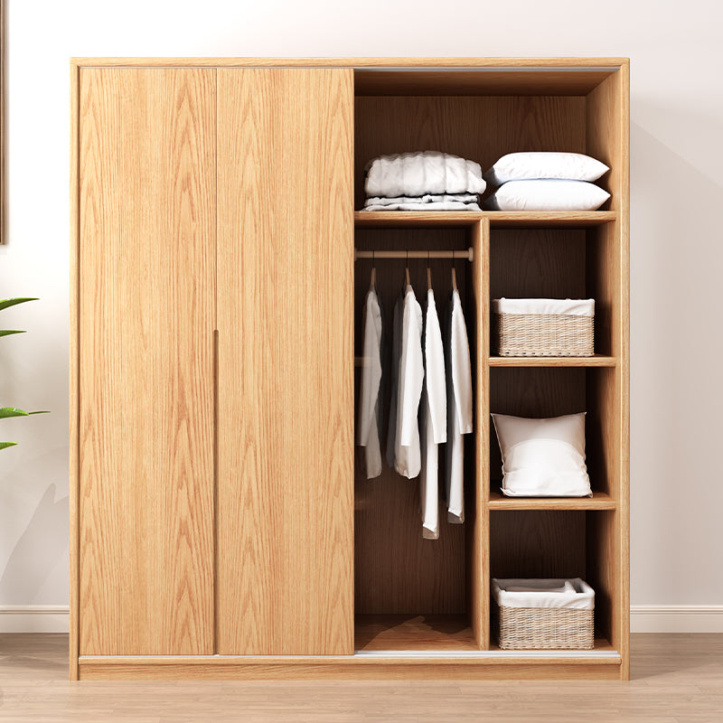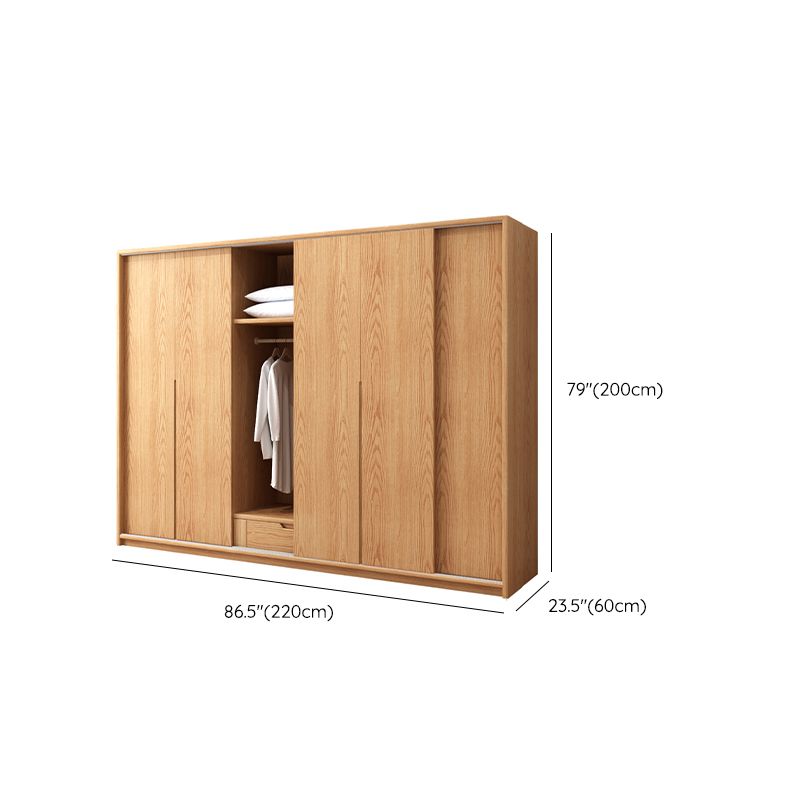 Oak Solid Wood Kids Closet Modern Style Brown Wardrobe Closet with Sliding Door