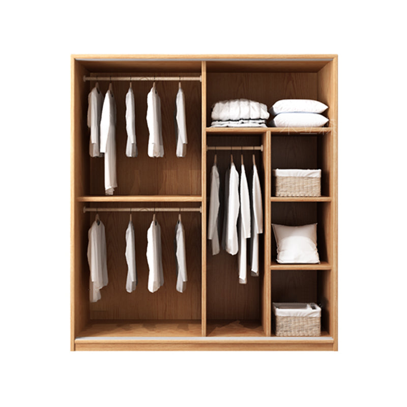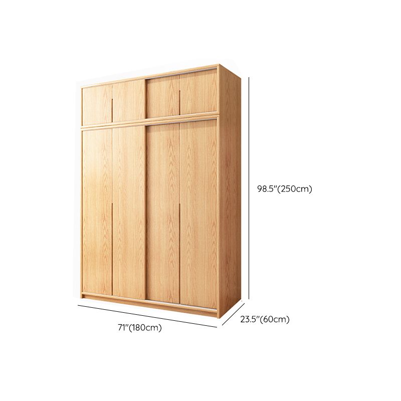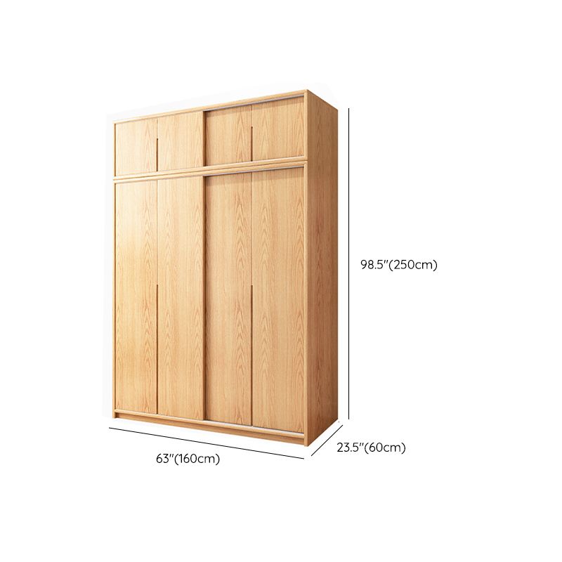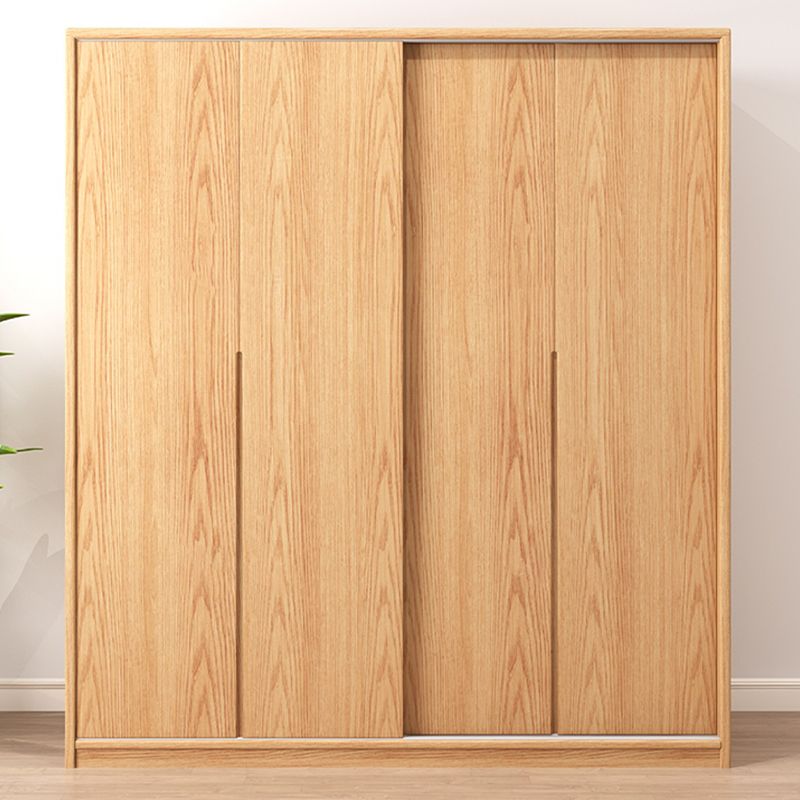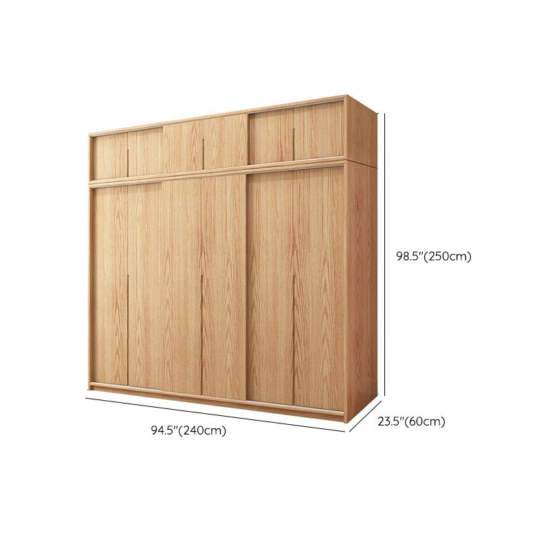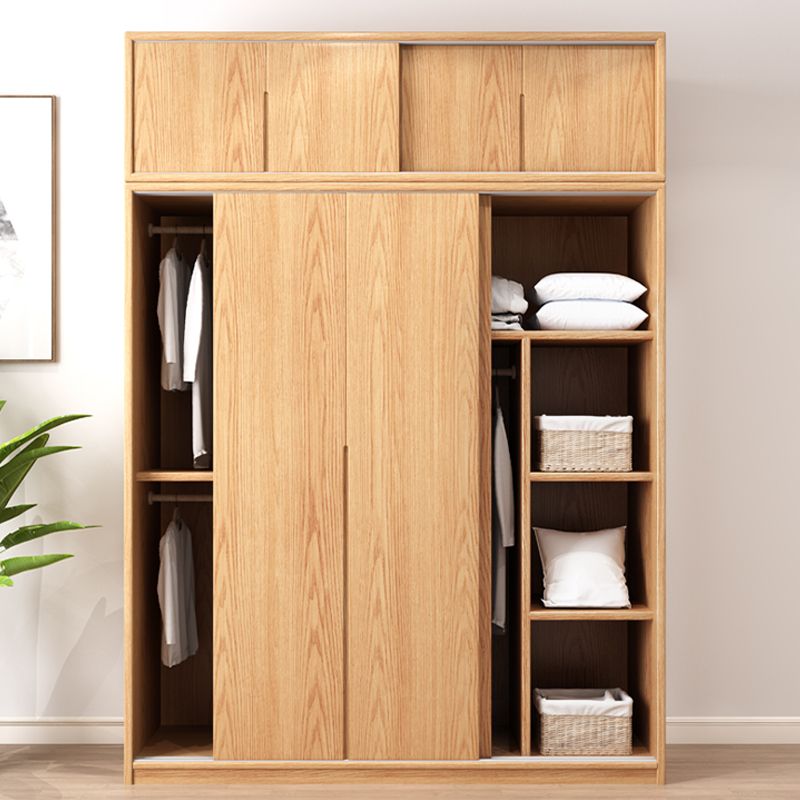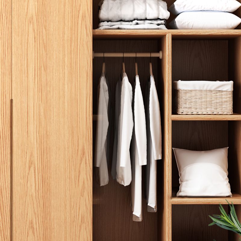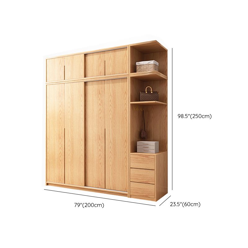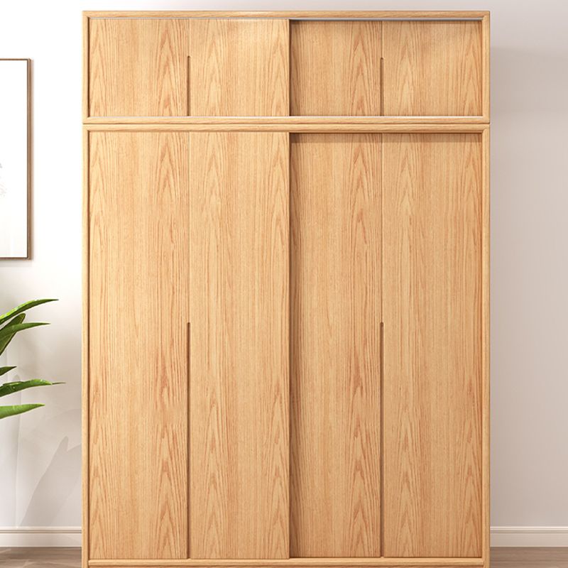 Oak Solid Wood Kids Closet Modern Style Brown Wardrobe Closet with Sliding Door