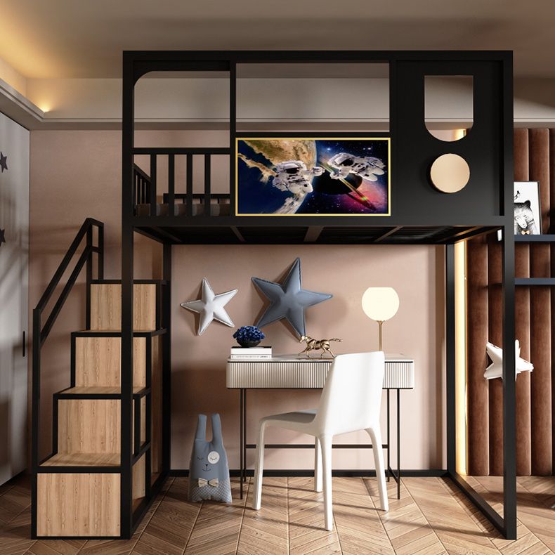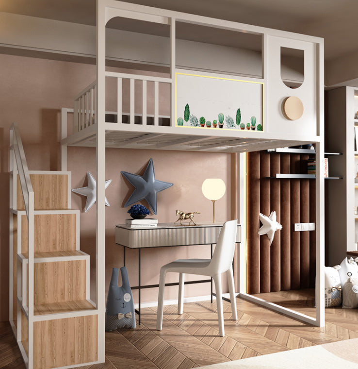 Open Frame Beds in Metal Modernism Built-In Ladder High Loft Bed
