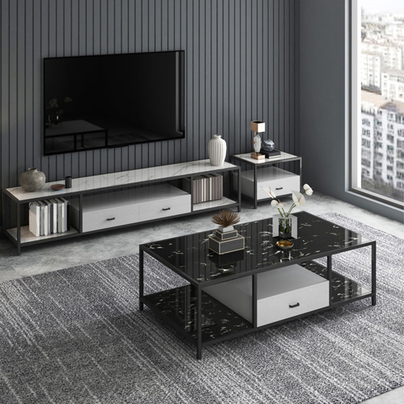 Open Shelving Media Console TV Stand Stone TV Stand with Drawers