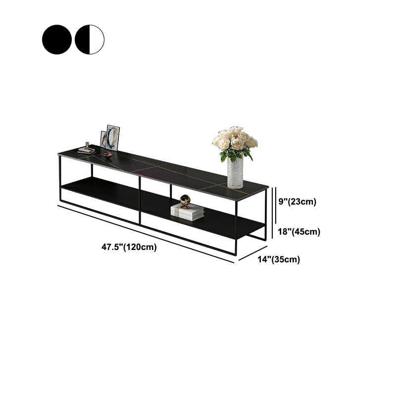 Open Shelving TV Media Stand Contemporary Stone and Metal TV Stand Console