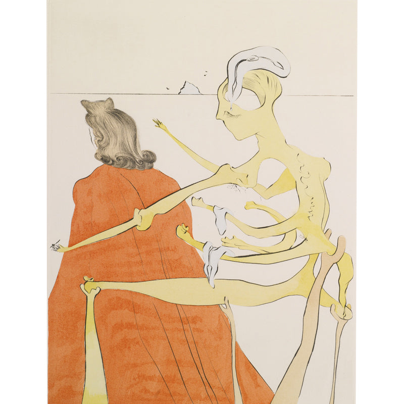 Orange Surrealist Wall Paper Mural Huge Skeleton on the Back of Priest Wall Covering for Home