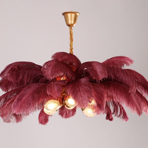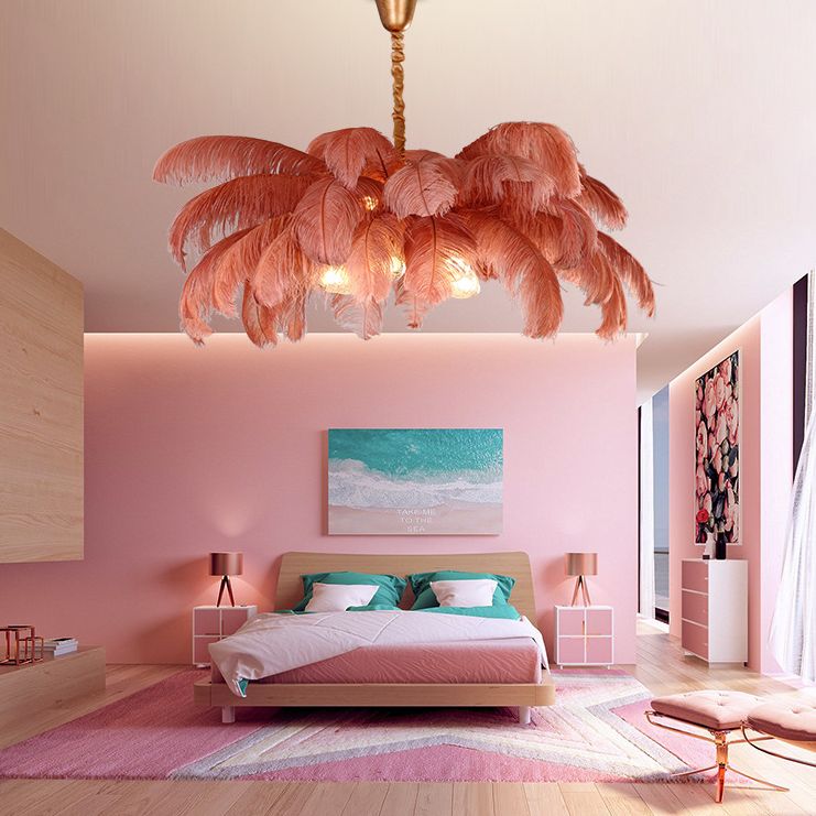 Ostrich Feather Ceiling Chandelier Modern Nordic Creative 5 Light Hanging Ceiling Light for Bedroom